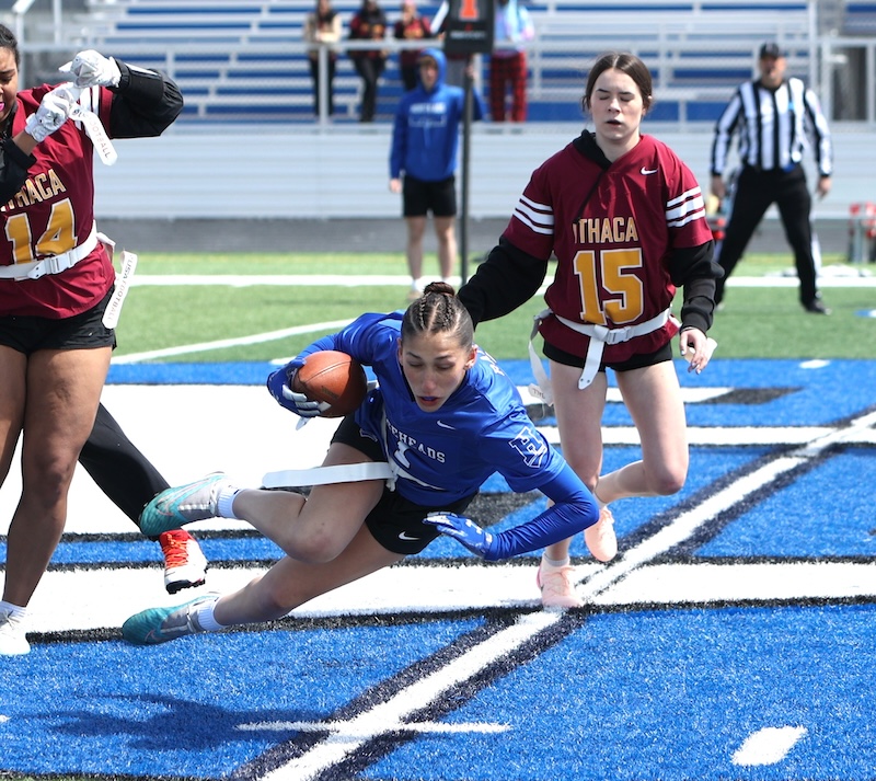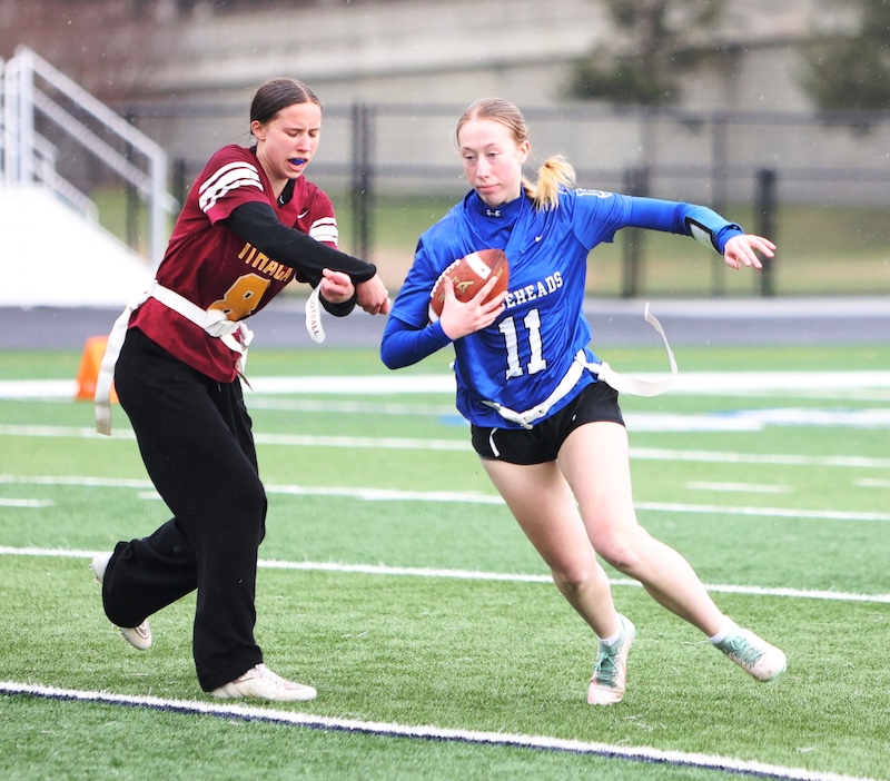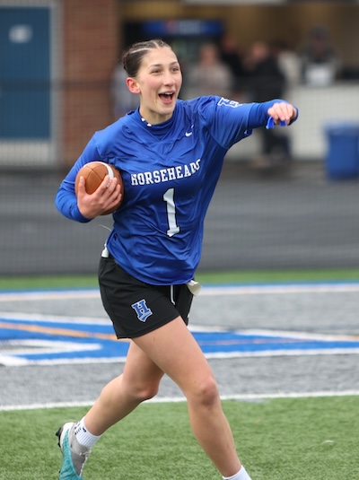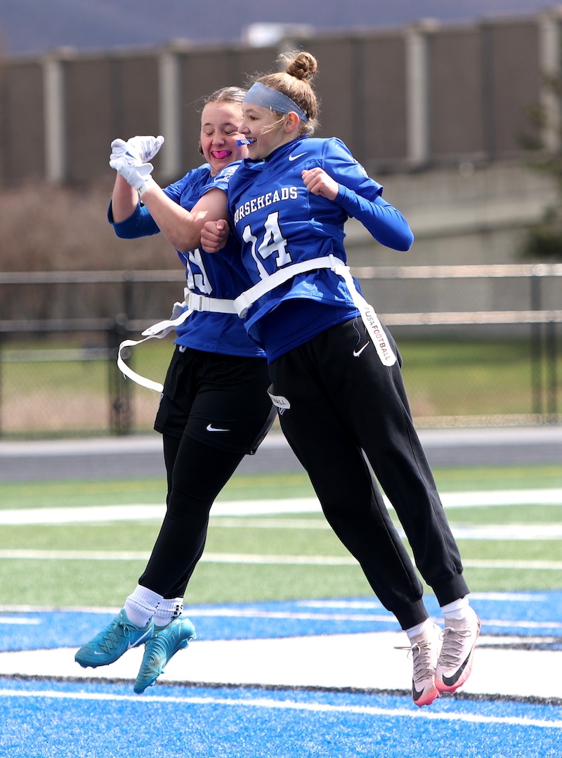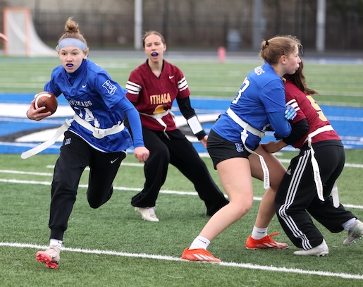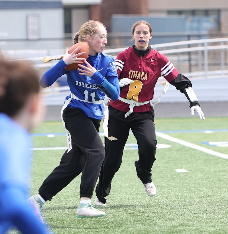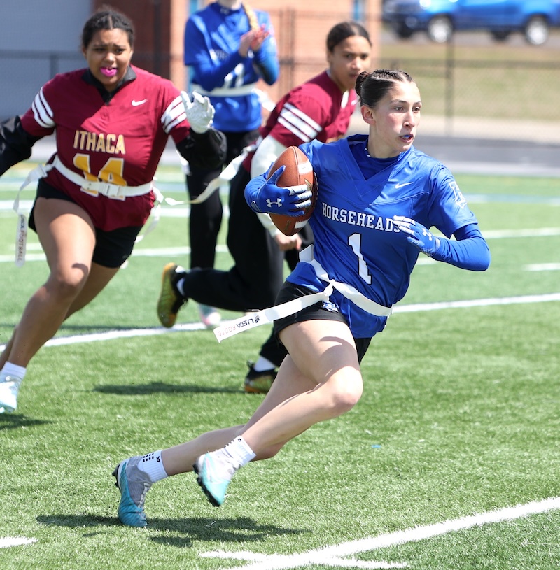 SECTION 4 FLAG FOOTBALL: BLUNT SCORES FOUR TOUCHDOWNS AS HORSEHEADS TOPS ITHACA (24 PHOTOS)(April 15, 2025) Southern Tier Sports Report HORSEHEADS — The Horseheads flag football team picked up a 24-18 win over Ithaca on Tuesday afternoon behind four touchdowns by Sydney Blunt.