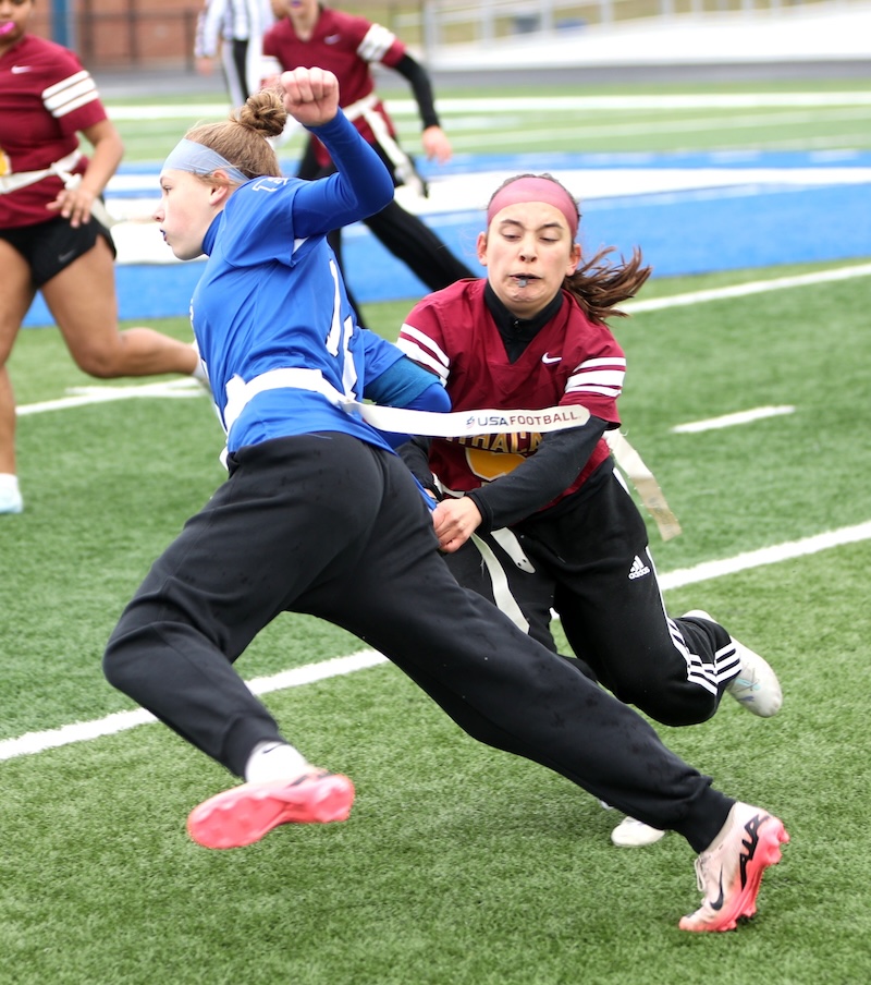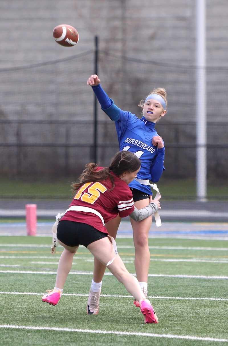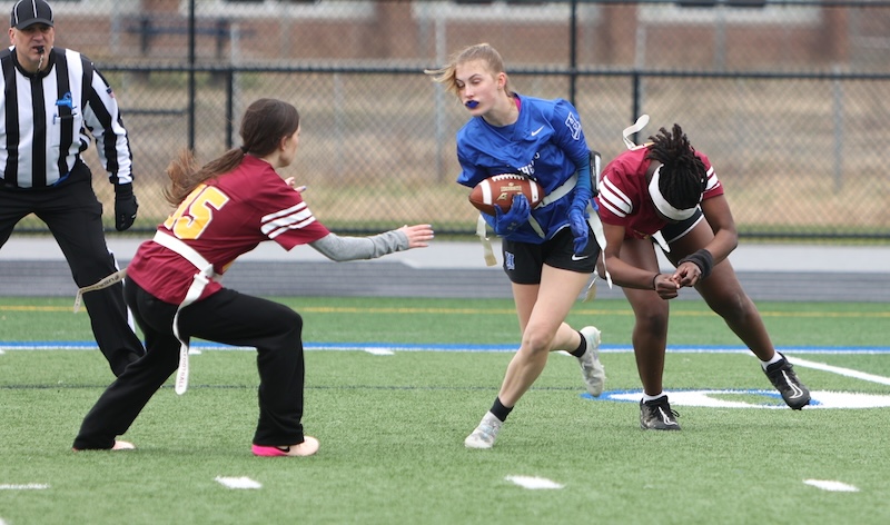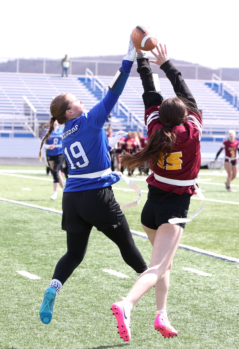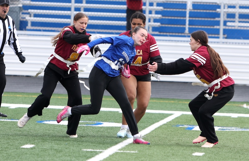 SECTION 4 FLAG FOOTBALL: BLUNT SCORES FOUR TOUCHDOWNS AS HORSEHEADS TOPS ITHACA (24 PHOTOS)(April 15, 2025) Southern Tier Sports Report HORSEHEADS — The Horseheads flag football team picked up a 24-18 win over Ithaca on Tuesday afternoon behind four touchdowns by Sydney Blunt.