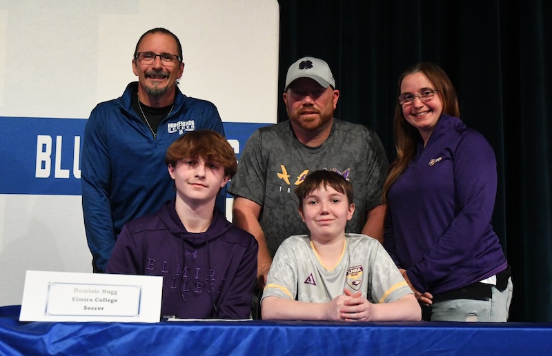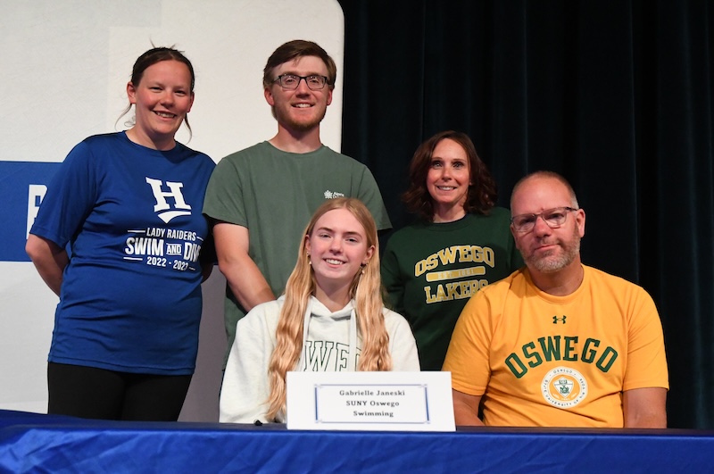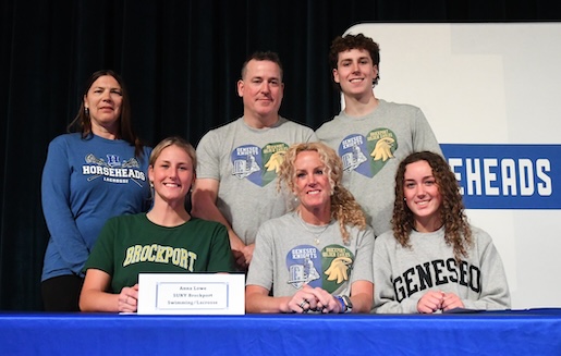 Sisters Anna and Sibby Lowe will both compete at the next level. Sibby will swim at Geneseo and Anna will swim and play lacrosse at Brockport. Gabrielle Janeski will swim at Oswego and Jordan Sheehan, who played hockey for Ithaca, since Horseheads doesn’t have a hockey team, will play hockey at Buffalo State.