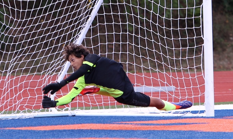 Nate Perez had 13 saves in goal for the Spartans, including a number of spectacular diving stops.