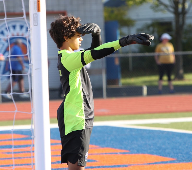 Nate Perez had six saves in goal for the Crusaders. ———— PHOTOS BY BRIAN FEES