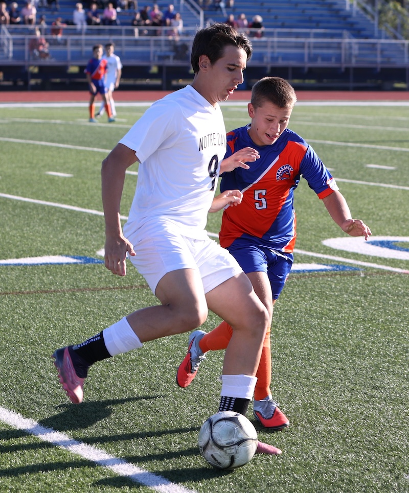 IAC BOYS' SOCCER: TWO HAVE HAT TRICKS AS ND BOYS TOP EDISON (24 PHOTOS) (2025-09-30) Southern Tier Sports Report ELMIRA HEIGHTS — Matt Keough and Davi Valente each had hat tricks as the Notre Dame boys’ soccer team topped Edison 9-0 on Tuesday.
