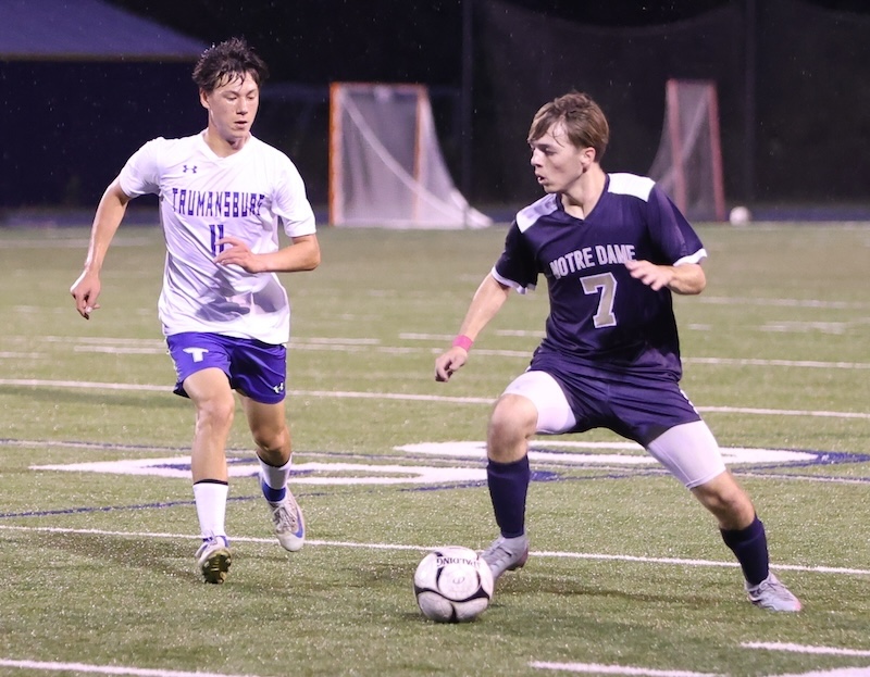 IAC BOYS' SOCCER: ND FALLS TO TRUMANSBURG ON SENIOR NIGHT (2025-10-07) Southern Tier Sports Report SOUTHPORT — On senior night, the Notre Dame boys’ soccer team fell to Trumansburg, 4-0.
