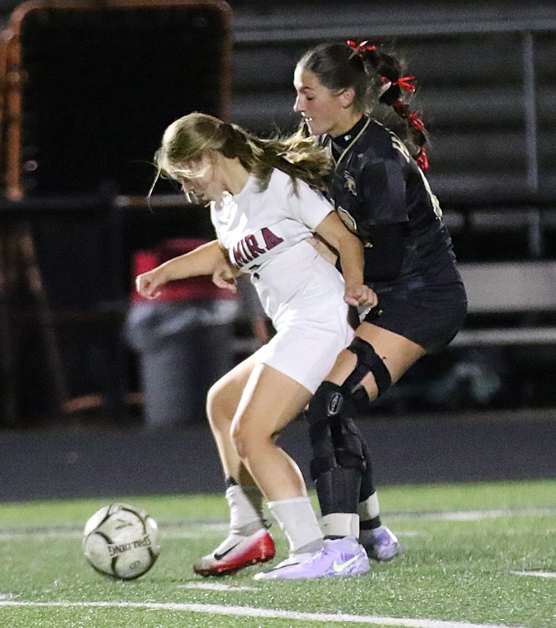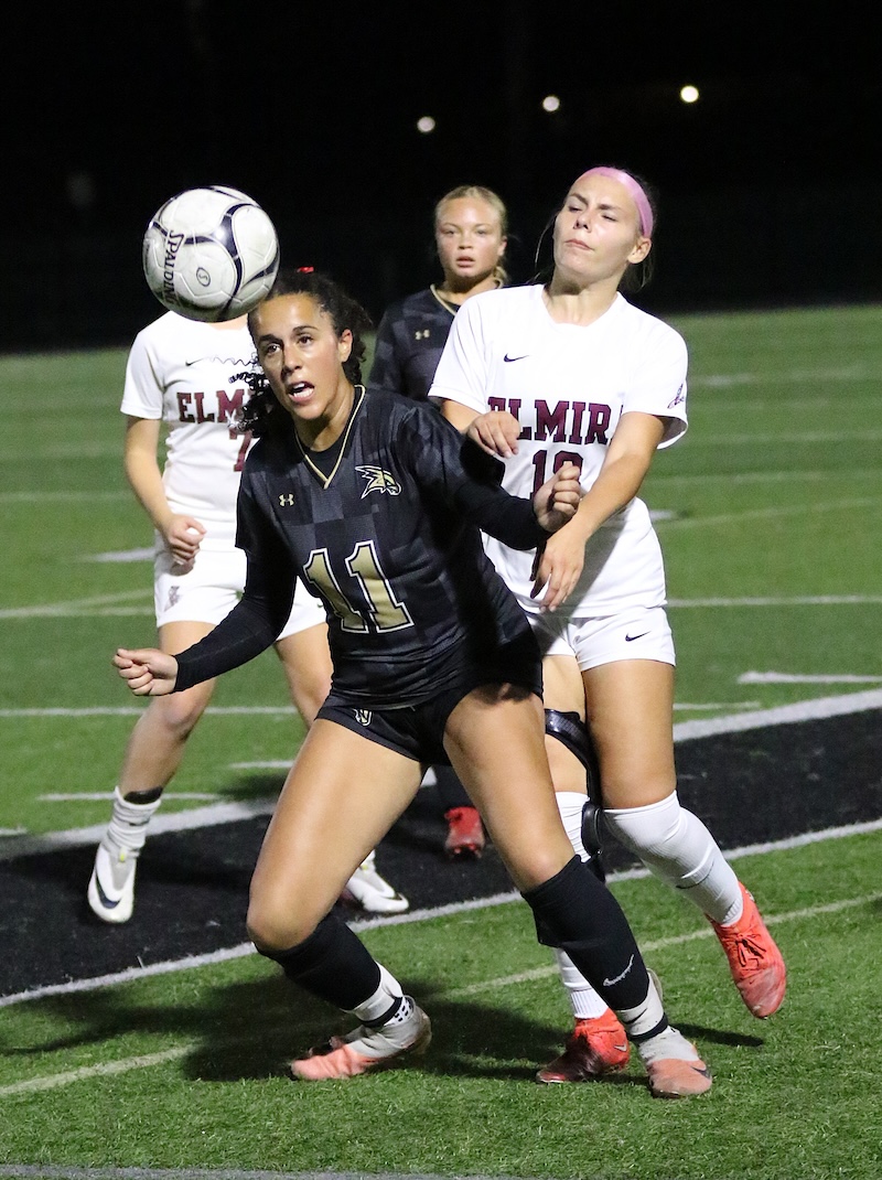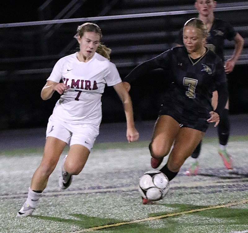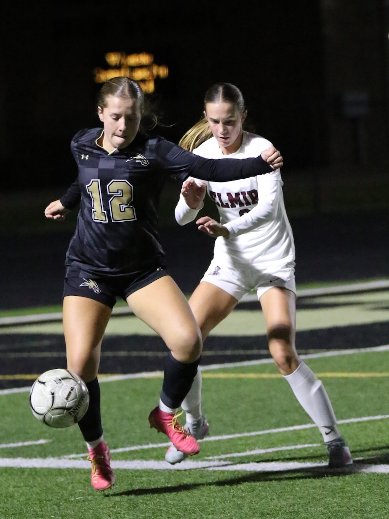 STAC GIRLS' SOCCER: CORNING JUMPS OUT TO EARLY LEAD AND HOLDS OFF ELMIRA (2025-10-08) Southern Tier Sports Report CORNING — The Corning Hawks jumped out to a 3-0 lead and held on to beat Elmira 3-2 on Wednesday night.
