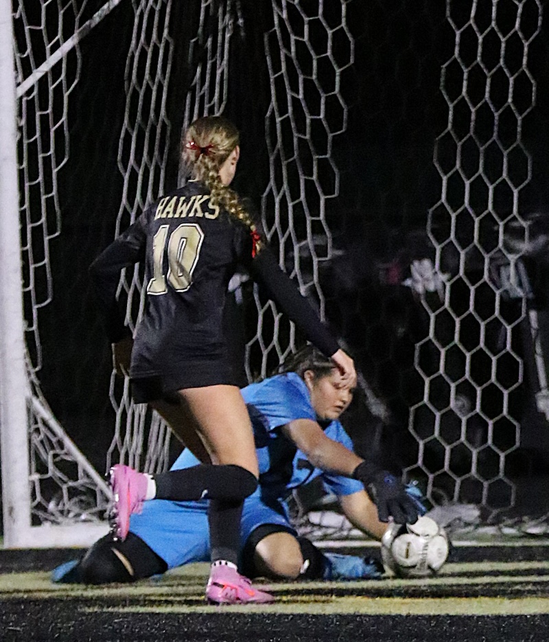 Elmira had six shots and Karina Swarthout finished with four saves for the Hawks. ——— PHOTOS BY SHEILA SUTTON.