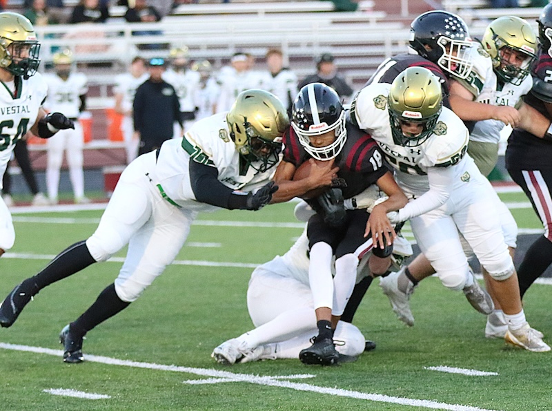 Vestal struck first as Grayson Burns hauled in a 30-yard pass from Josh Kweller and Preston Antesberger hit the extra point at 7:56.