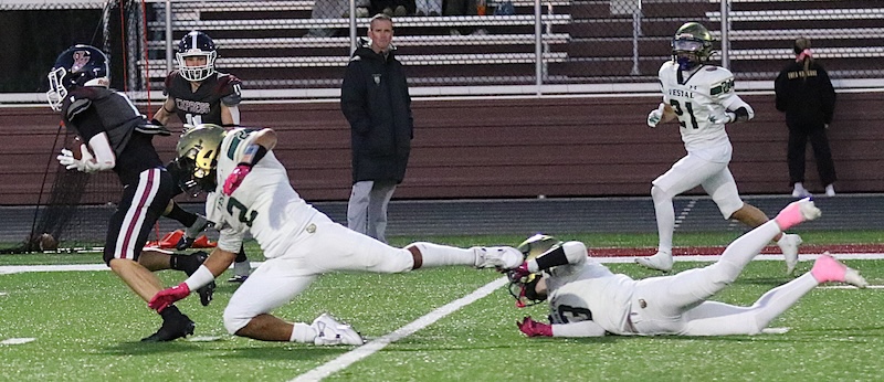 Southern Tier Sports ReportELMIRA — Leading 35-20 after three quarters, the Elmira Express held off Vestal 42-40 to win their homecoming game on Friday night.