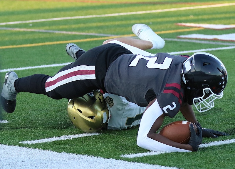 Arius Bradbury recovered a fumble in the end zone just 13 seconds later and Guyette hit the kick to put Elmira up 21-14.