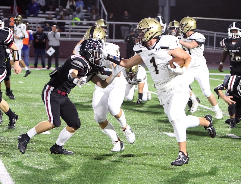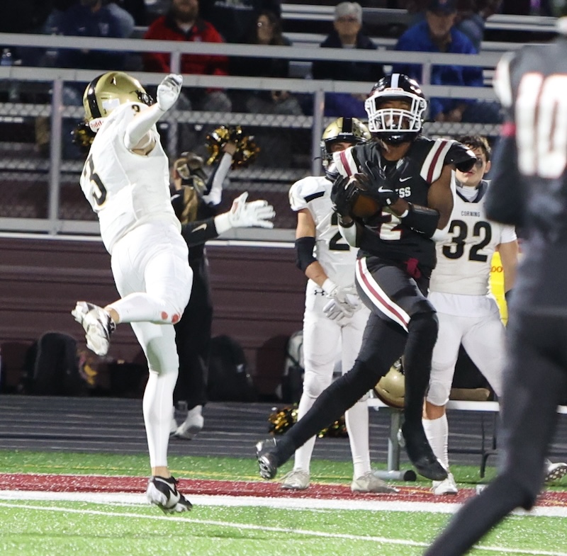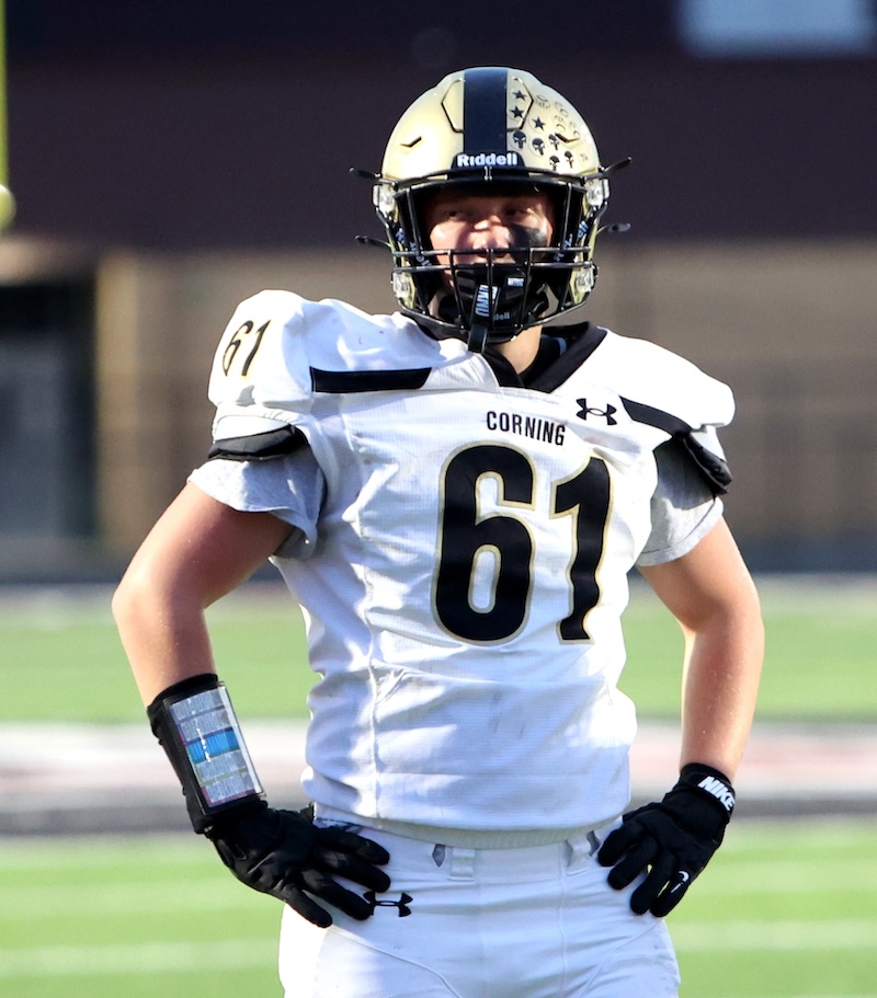 It was Corning who struck first as Clayton Smith scored on a three-yard run with 8:30 left in the half. Tahj Haynes had the two-point run and it was 8-0 Hawks.