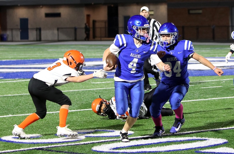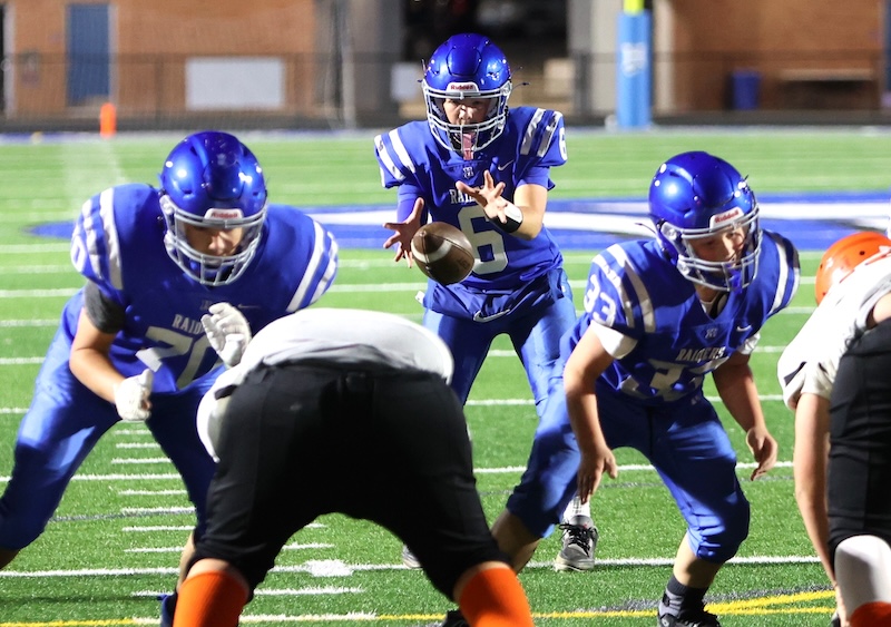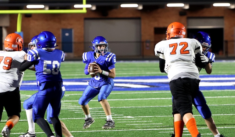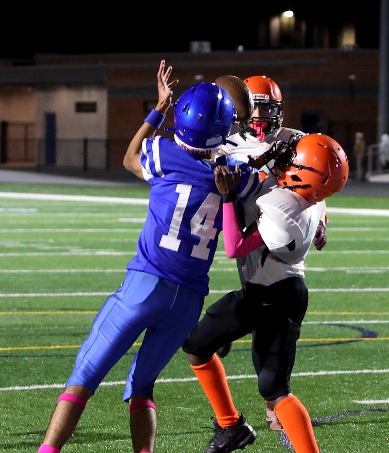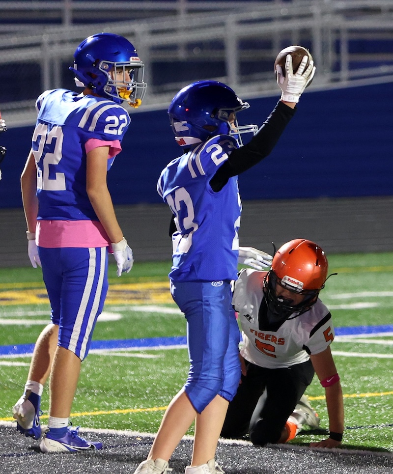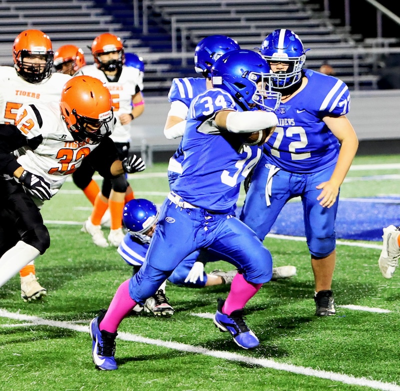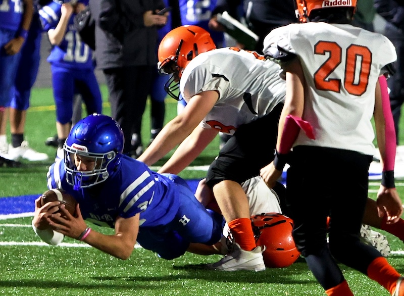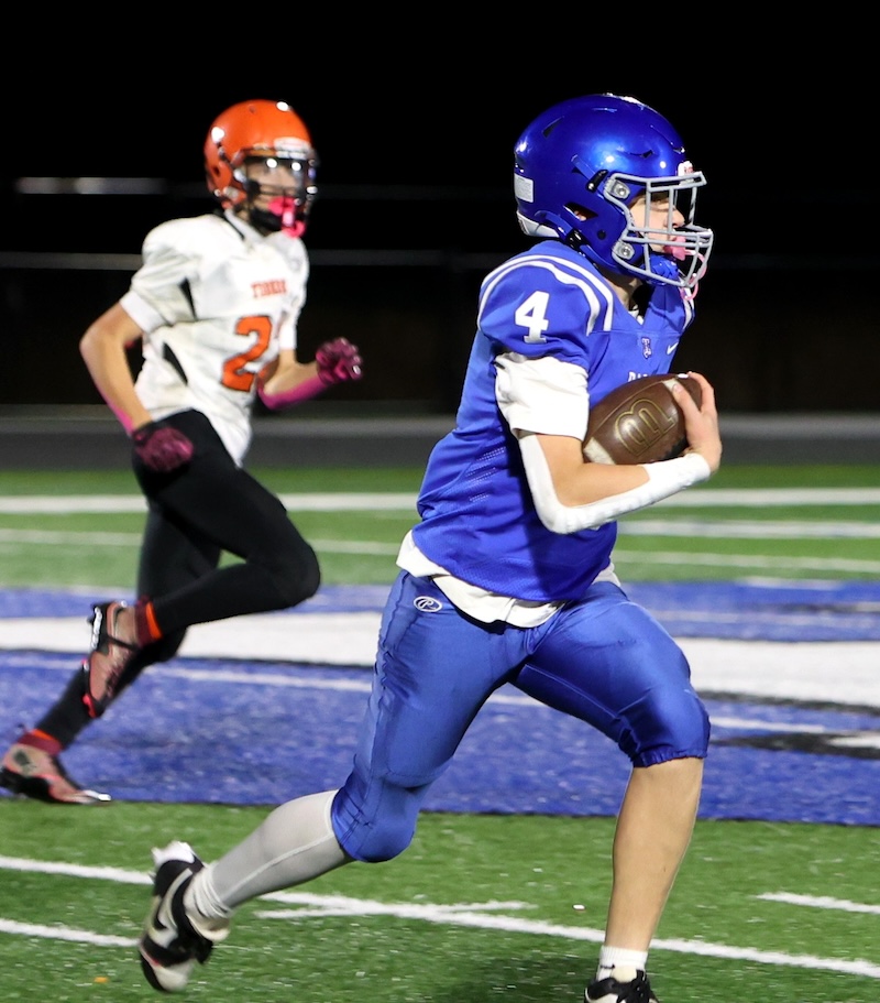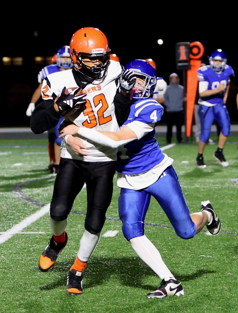 Playing under the lights at the new stadium, U-E missed a two-point chance with under three minutes to go, and then the Tigers last-second drive ran short on time. ——— PHOTOS BY BRIAN FEES