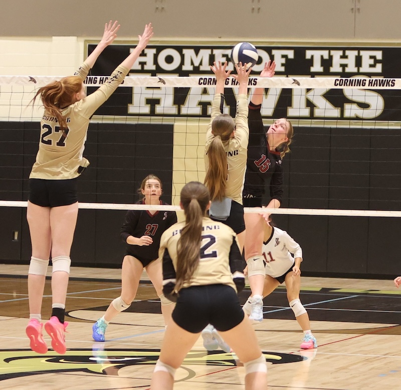 Southern Tier Sports ReportCORNING — The Corning Hawks advanced to the Section IV, Class AAA volleyball championship game with a 3-0 win over Elmira on Wednesday, 25-12, 25-23, 25-17.