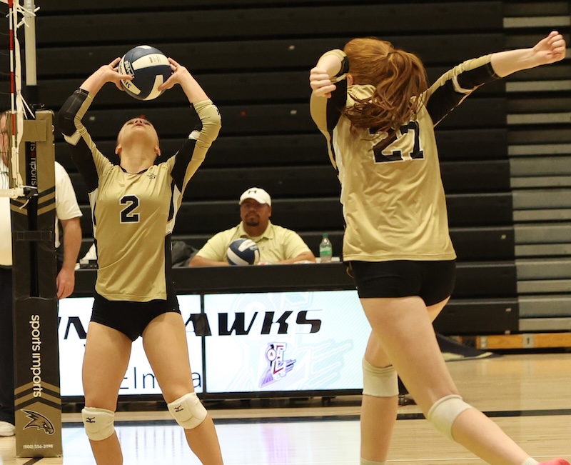 For Elmira Hannah Matthews had five kills, two digs and three assists and Aleah Leonberger had six assists and six serves.