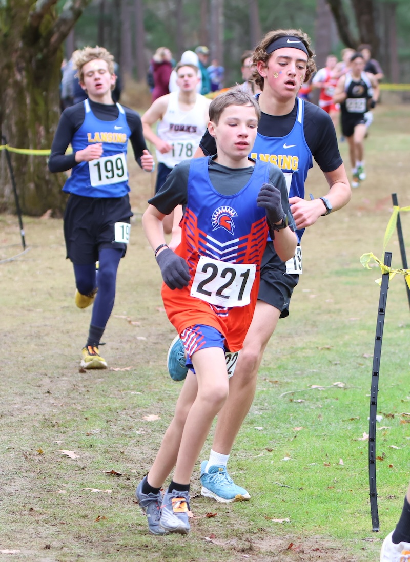 Jameson Duggan was 10th for the boys in 18:55.60. Jeremiah Hubschmitt was 47th in 21:25 and Grayson Margeson was 55th in 22:56.40. Carter Smith was 58th in 23:16.90 and Jaxon Brewster was 63rd in 24:57.20. Shawn Kelly was 69th in 27:35.90.