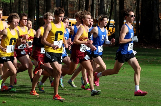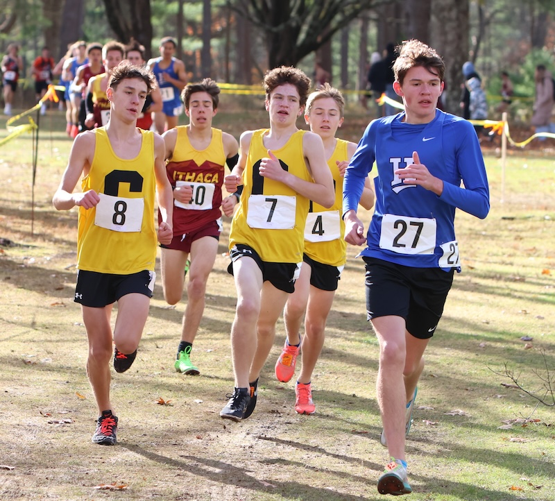 Allen Wetmore ran a 17:36 to take 12th, followed by Gavin Hornsby in 17:36. Dominick Marino was 26th in 19:03 followed by Joseph Juan in 19:19 and Luke Dordoni (19:30).