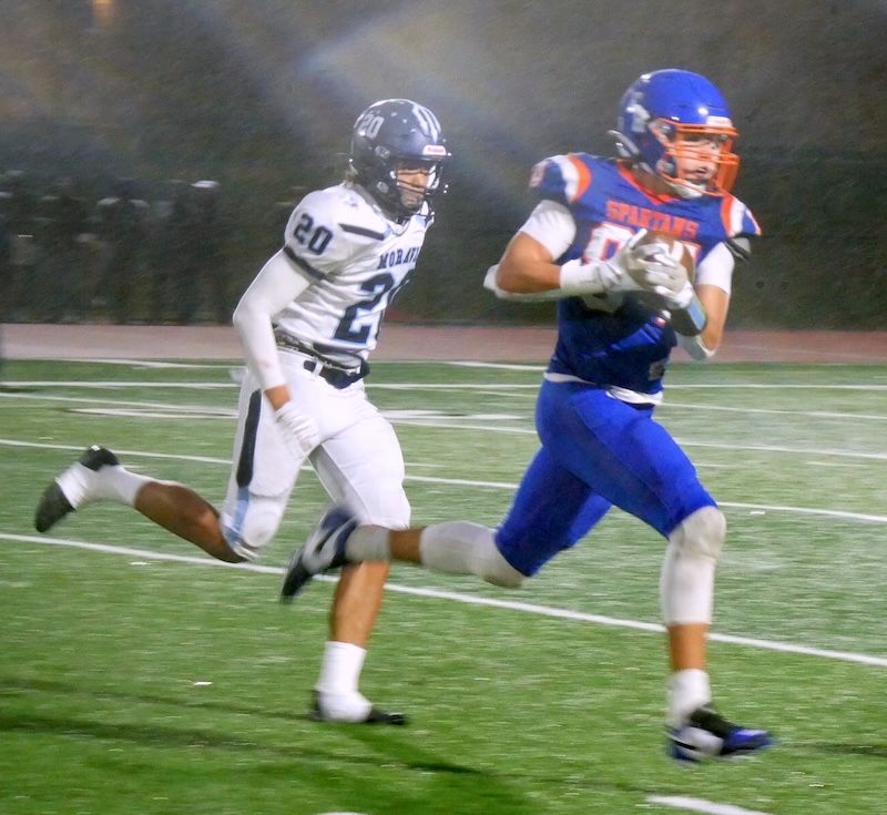 Moravia then scored the next 12 points in the final 1:15 of the half to go up 26-8 at the break. Corbett had this third touchdown of the game, catching a two-yard pass from Landis with 1:14 left in the half and then Landis had a 55-yard touchdown run with 10 seconds left in the half.