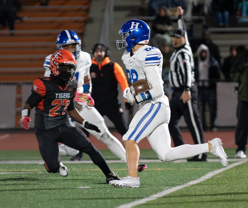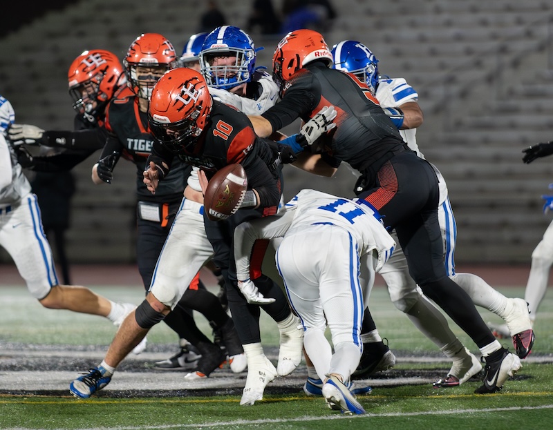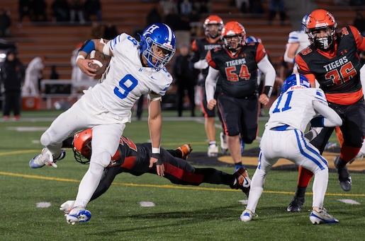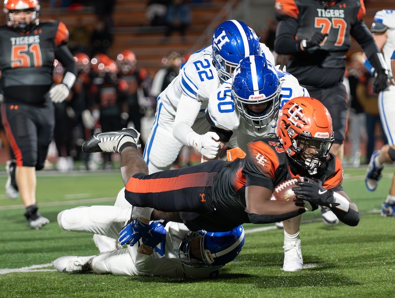 With just 14 seconds left in the half Joseph Gennarelli Jr. had a 14-yard scoring run to put the Tigers up 14-0.