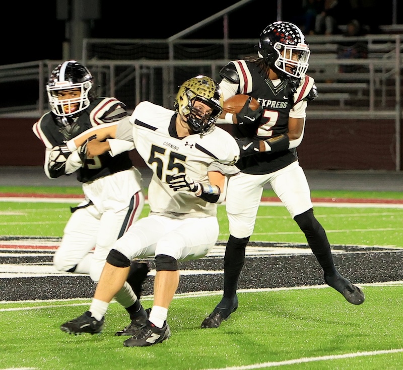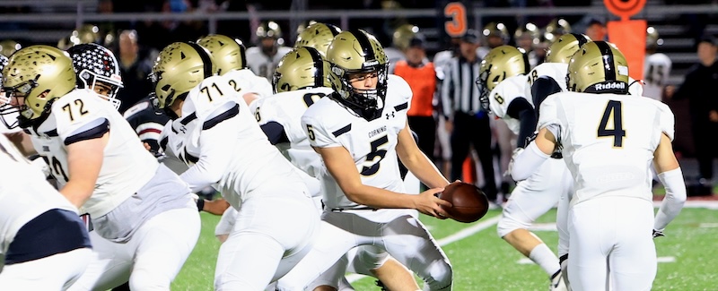 Cooper Bange was 3-for-8 for 55 yards for Corning and Smith had a 22-yard catch, Johnny Graham had an 18-yard catch and Paul Sanotra had a 15-yard catch.
