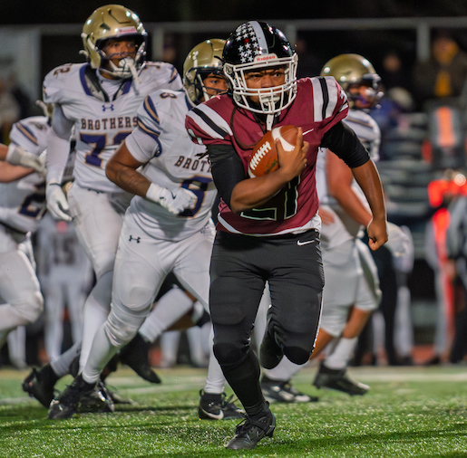 Senior Isaiah Coleman lead the Brothers with 83 yards and one TD on 12 carries, while junior Austin Ariola had 77 yards and one TD on seven carries, and sophomore Khaled Reese chipped in with 18 yards and one TD on three carries.