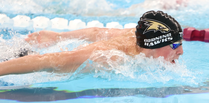 Crisco won the 200 IM in 2:01.30 and MJ Carro of Horseheads was fourth in 2:12.83. Corning’s Derek Gun was seventh in 2:17.55 followed by Horseheads’ Joe Wood (2:18.43). Kaeden Martinez of Corning was 10th in 2:19.10.