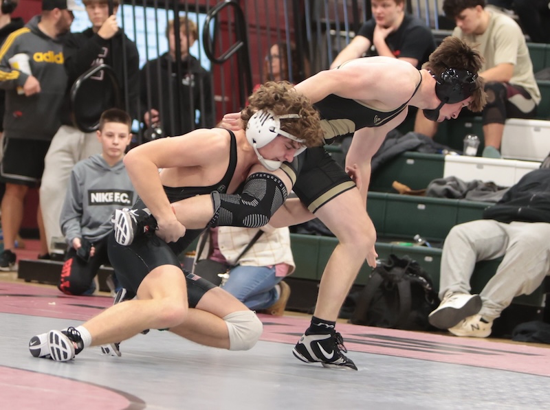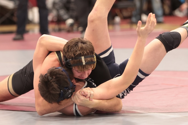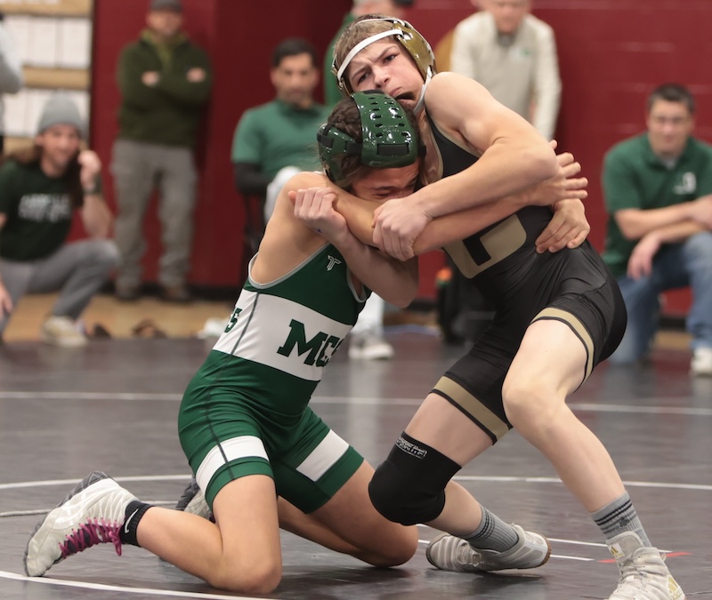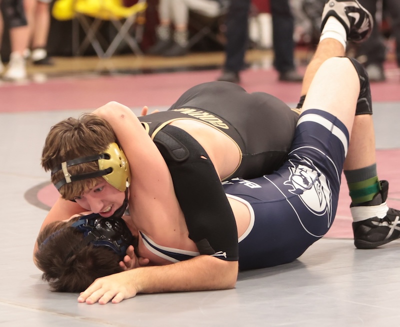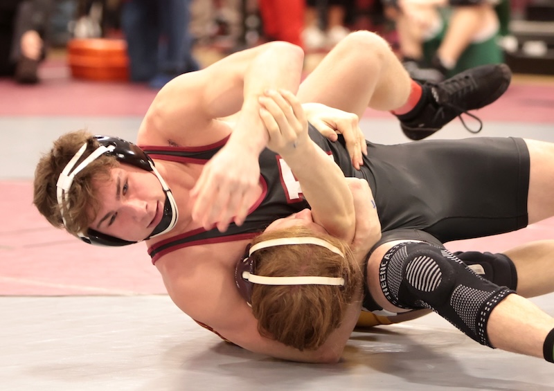 Elmira’s Ryder DePadua-Reese was runner-up at 138. He was edged 2-1 in tiebreaker one by Kyle Ritson of Whitney Point in the final. Parker Tolbert of Corning was fourth, falling by fall in 3:01 to Blaine Haney of Marcellus in the third-place match. Nicholas Woodcock of Corning was eighth.