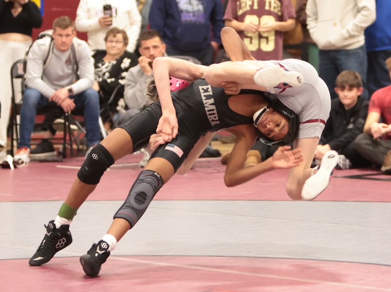 Corning’s Keegan VanCise was seventh at 157 followed by Elmira’s Cole Swanson. Corning’s Landyn Proudfoot was 10th followed by teammate Damon Vosburgh and Elmira’s Gavin Horton. VanCise won by major decision 9-0 over Swanson in the seventh-place match.