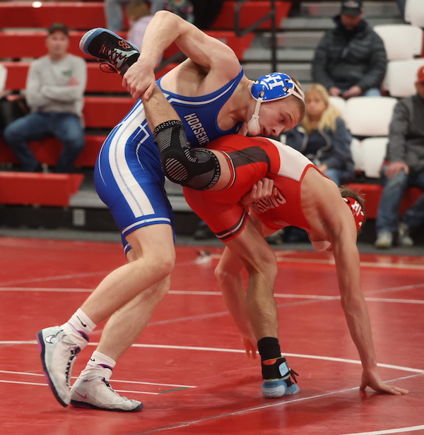 Connor Brubaker of Vestal pinned Trent Woodward in 5:37 at 157 and at 165 Wyatt Campbell of Horseheads pinned Braedan Moreno in 5:00.
