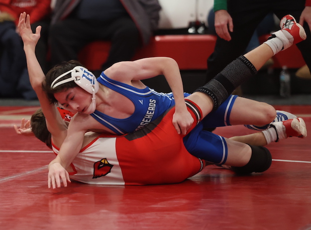 Against Vestal at 103 Vestal’s Brayden Rebello won by forfeit and at 110 Raf Haque of Vestal pinned Nolan Miller in 3:14.