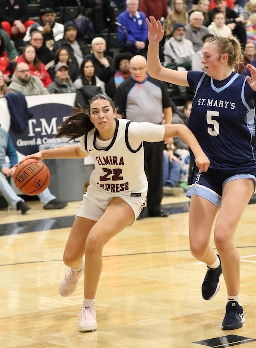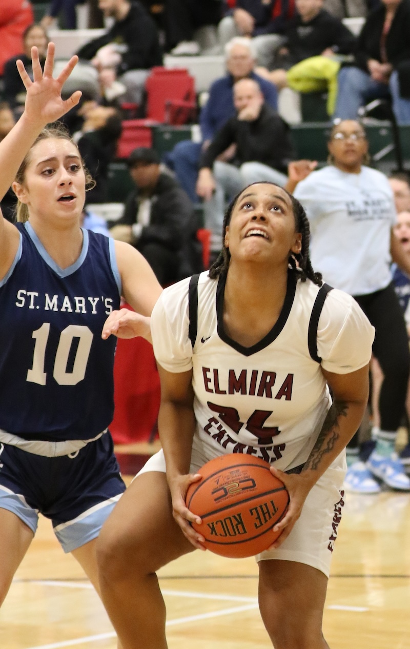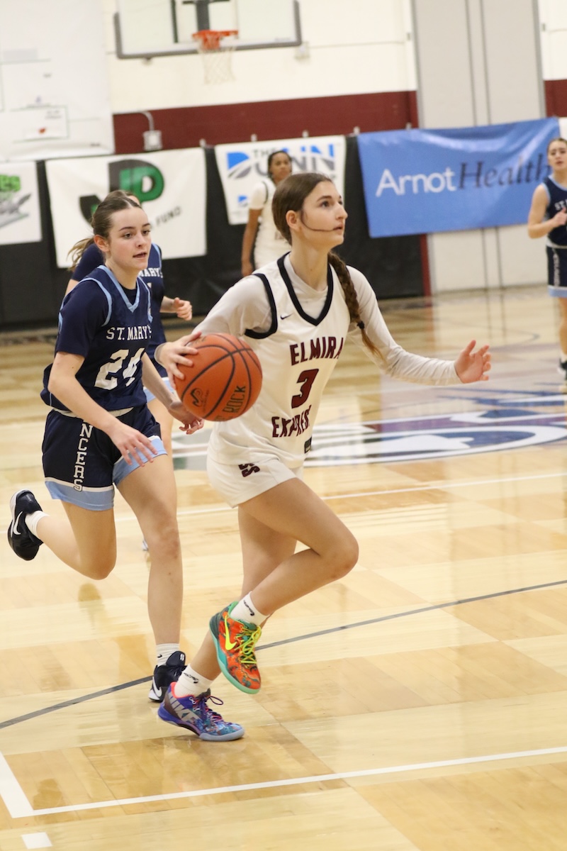 ““St. Mary’s is an outstanding team, and they may have had the girls team to ever compete in this tournament. They’re also one of the top teams in New York State right now. I’m proud of our kids for fighting and competing for 32 minutes. I know the scoreboard shows what it shows, but we learned a lot about ourselves today and throughout this tournament,” Elmira coach A’Don Allen said.