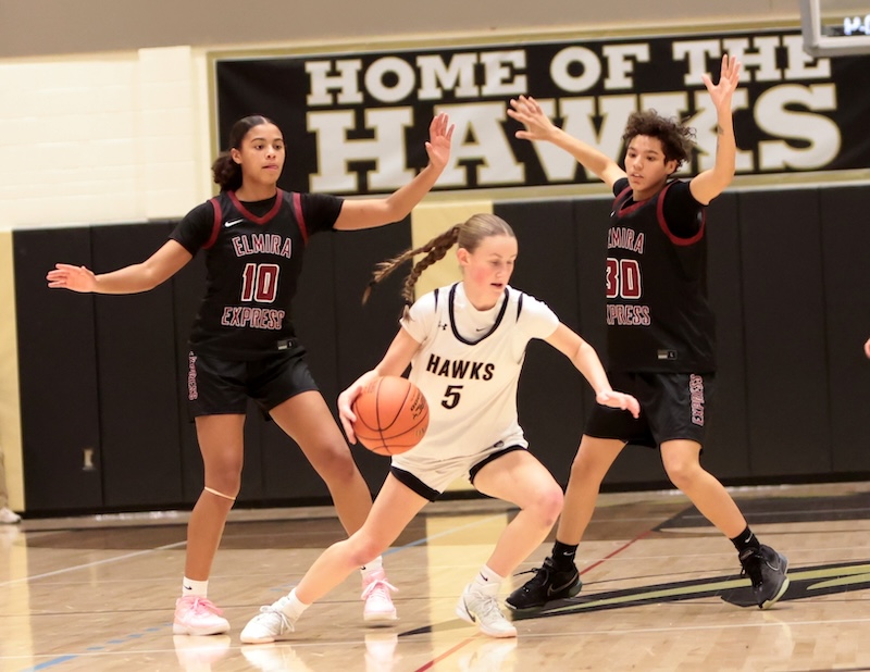 STAC GIRLS' BASKETBALL: CORNING NOTCHES HOME WIN OVER ELMIRA (24 PHOTOS)(January 2, 2025) Southern Tier Sports Report CORNING — The Corning Hawks got off to a fast start as they picked up a 63-56 win over Elmira on Friday night.