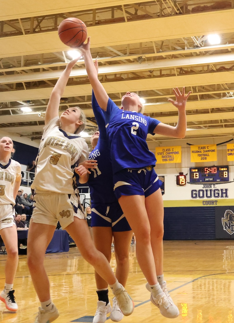 IAC GIRLS' BASKETBALL: ND NOTCHES WIN OVER LANSING (24 PHOTOS)(January 6, 2026) Southern Tier Sports Report SOUTHPORT — The Notre Dame girls’ basketball team picked up a 53-44 home victory over Lansing on Tuesday night.