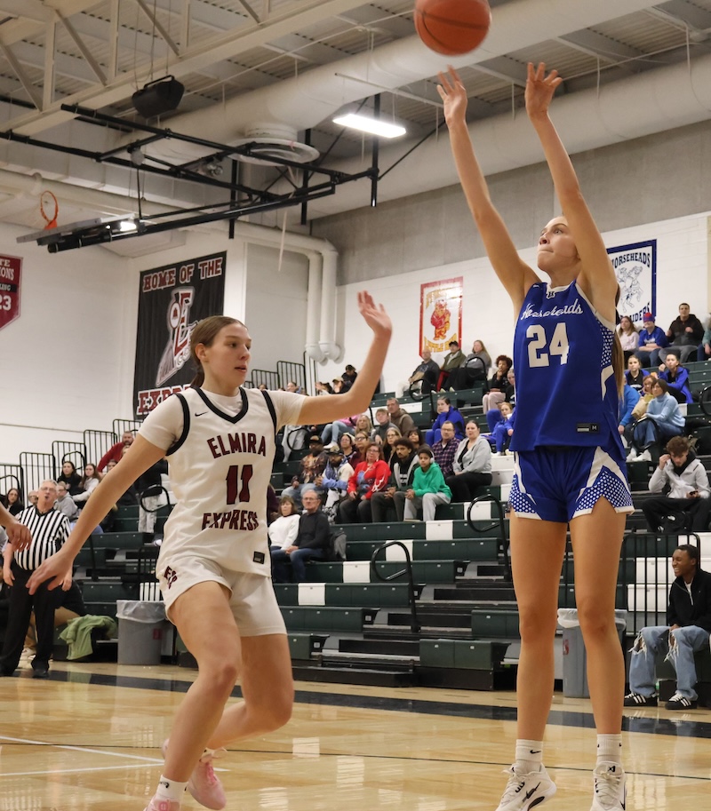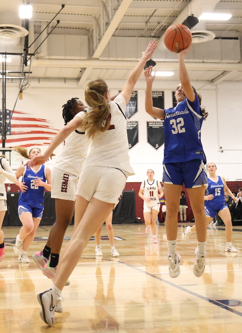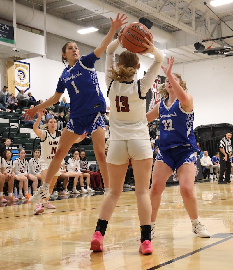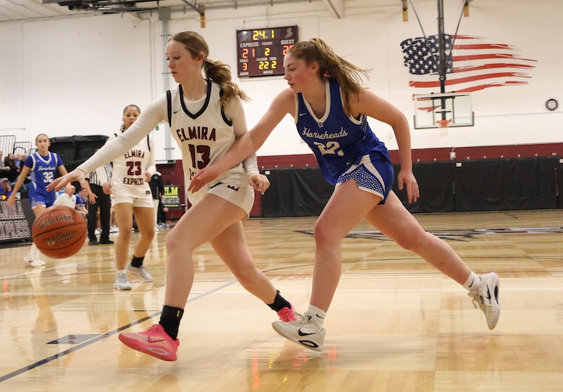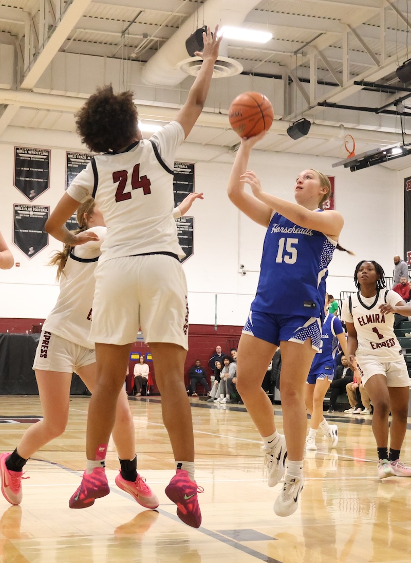 STAC GIRLS' BASKETBALL: HORSEHEADS HOLDS OFF ELMIRA (24 PHOTOS)(January 13, 2026) Southern Tier Sports Report ELMIRA — The Horseheads girls’ basketball team held off Elmira on Tuesday night 45-41 in STAC girls’ basketball action.