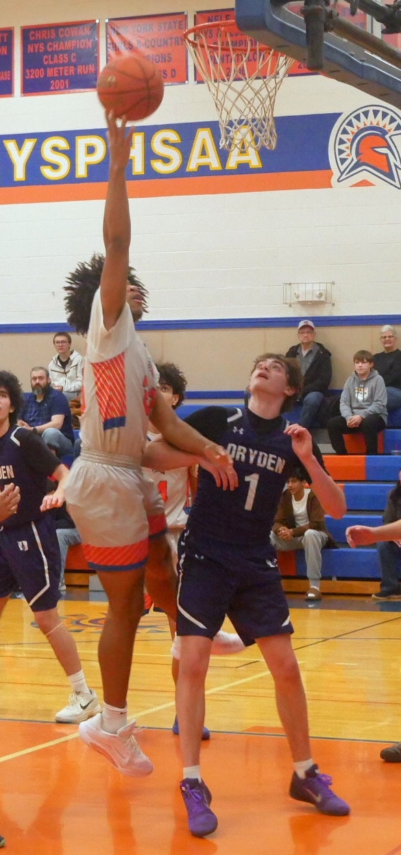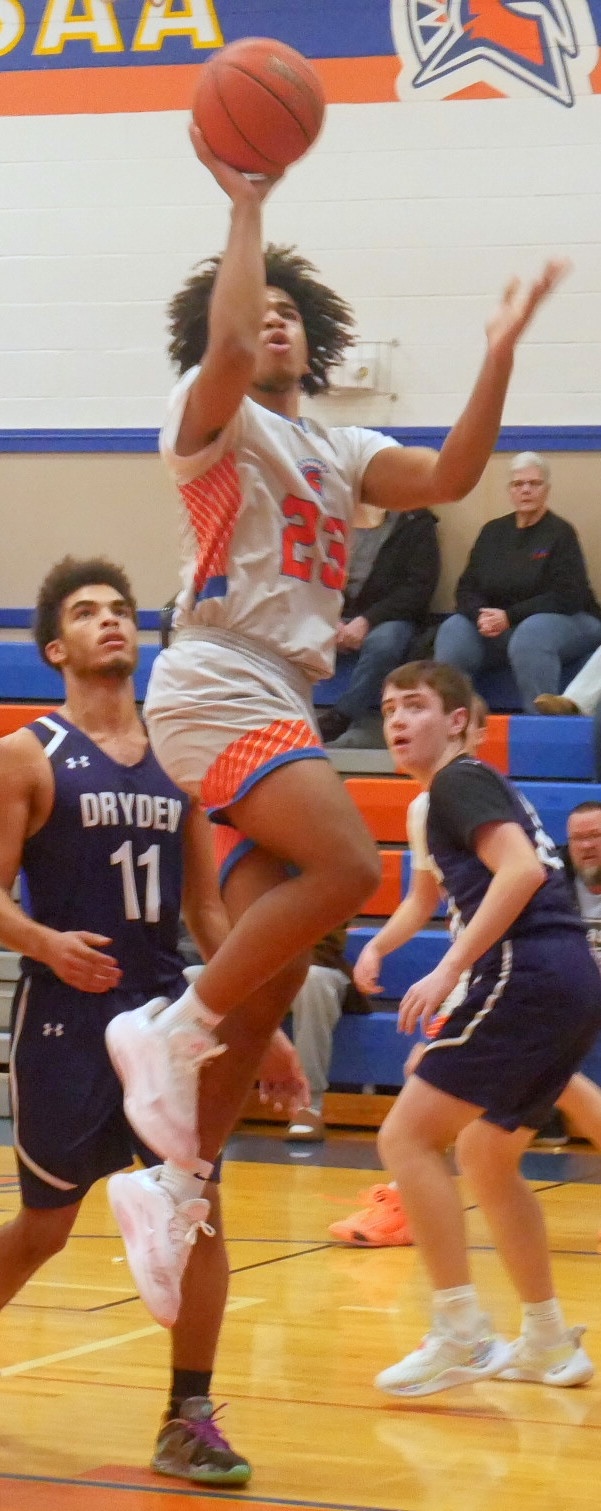 ELMIRA HEIGHTS — Marcquis Bradley Jr. scored 25 points as the Edison boys’ basketball team edged Dryden 45-43.
