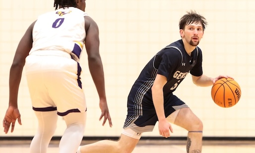 PLAY-BY-PLAYTyler Cardello opened the game's scoring with a three-pointer, then followed it up with two more on Elmira's next two possessions. Cardello's hot start put the Soaring Eagles up 9–4 early, but a strong response from Geneseo sparked a 16–2 run by the Knights. JJ Babcock's jumper eight minutes into the game cut the deficit to seven, but another Geneseo run extended the lead to 35–19. An Alec Mercer triple helped the Soaring Eagles answer with their own 10–0 run. EC's strong finish to the half sent them into the locker room trailing 40–31.