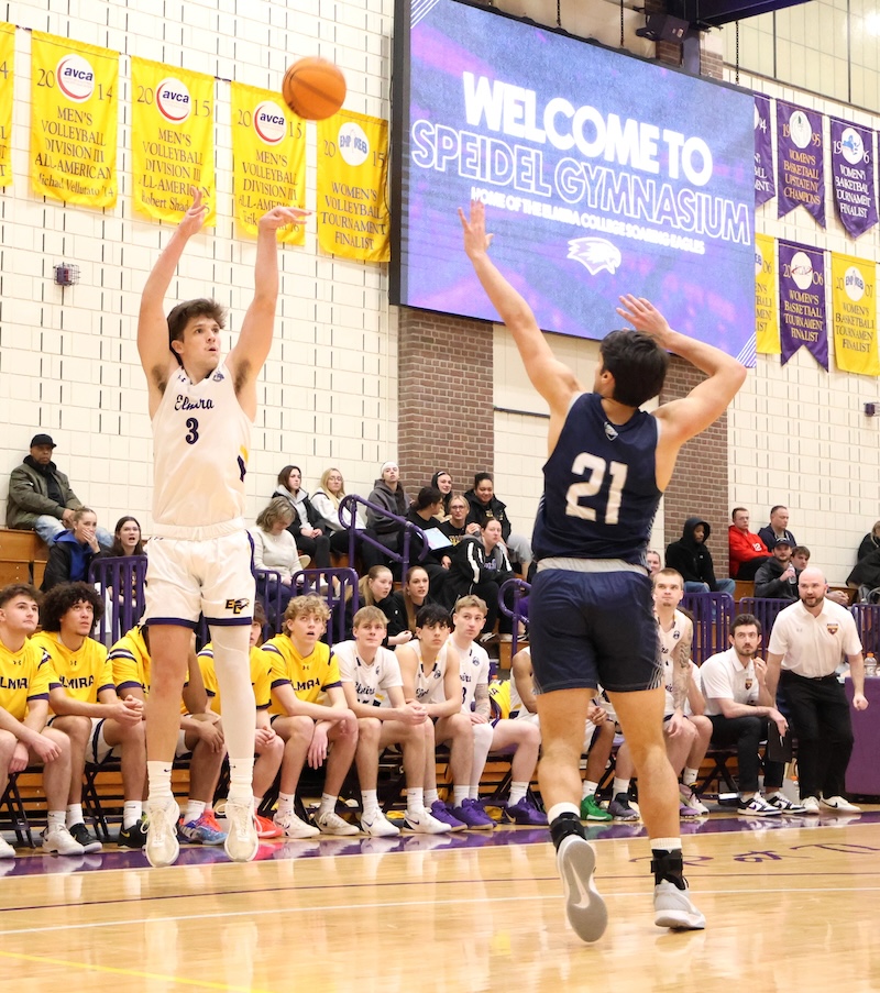 Southern Tier Sports ReportELMIRA, N.Y. - The Elmira College men's basketball team hosted Empire 8 opponent SUNY Geneseo last week in their lone meeting of the season. The Soaring Eagles fell to the Knights, 91–76.