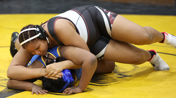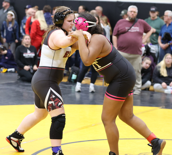 Ayvah Coker of Elmira was third at 235. She had a pin in 1:54 over ZaNiyah Hawkins of Indian River in the third-place match. ———— PHOTOS BY TIM TAYLOR.