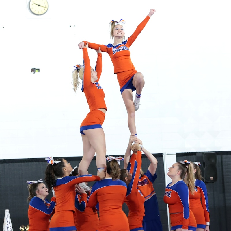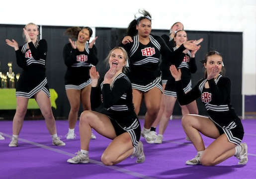 Elmira and Edison’s cheer teams were both competing on Sunday. ——— PHOTOS BY BRIAN FEES