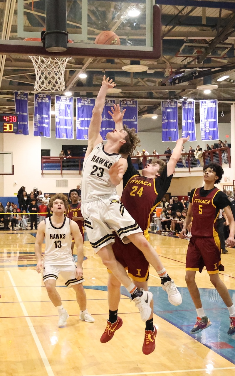 The boys took the court right after the Hawks watched the girls win the sectional title over Elmira.