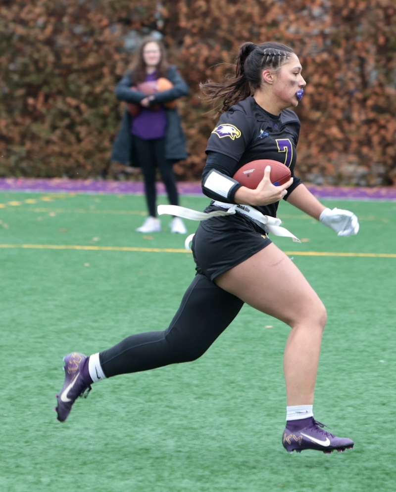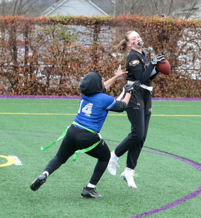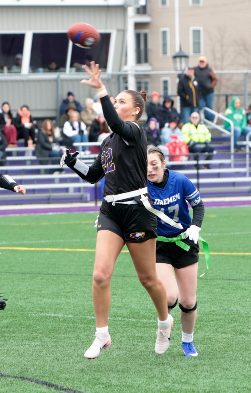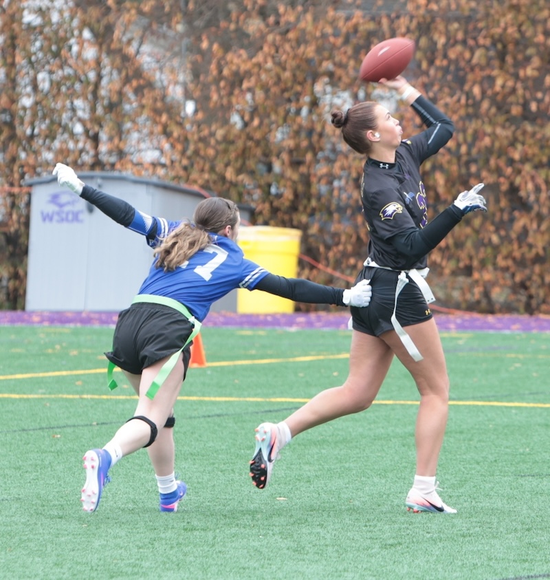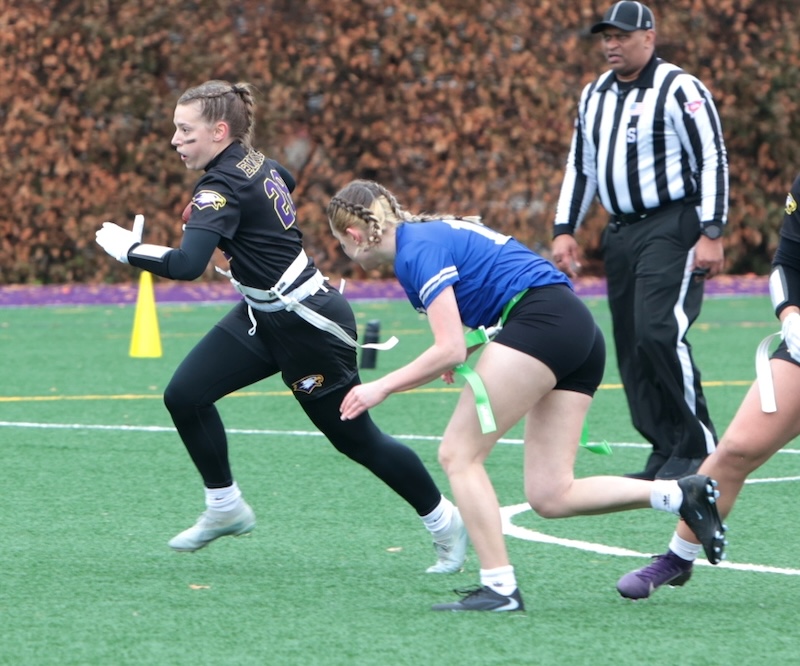 Faith Ingber had four catches for 62 yards and two scores and Kylie Cook caught three passes for 53 yards and a score and Nyla Capen had two catches for eight yards and a score.