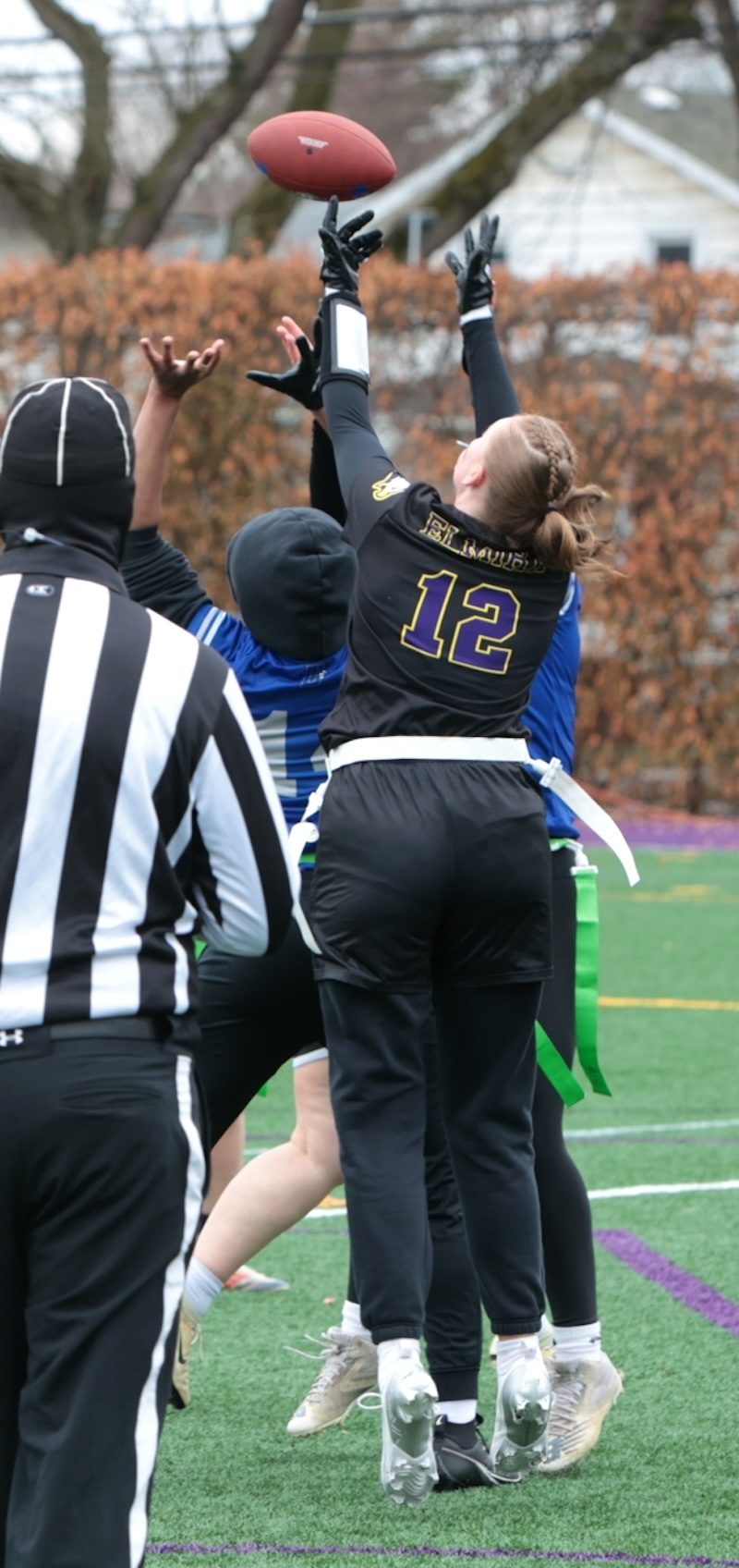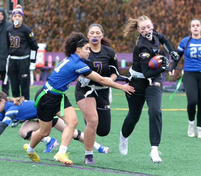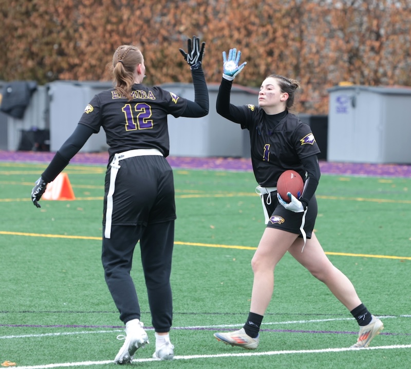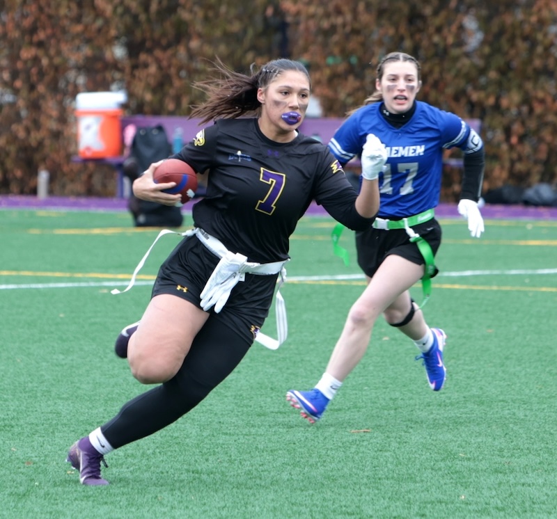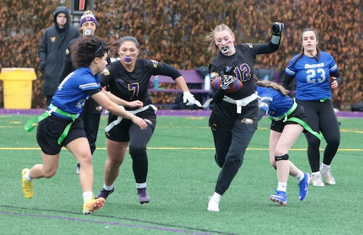 Faith Ingber had four catches for 62 yards and two scores and Kylie Cook caught three passes for 53 yards and a score and Nyla Capen had two catches for eight yards and a score.