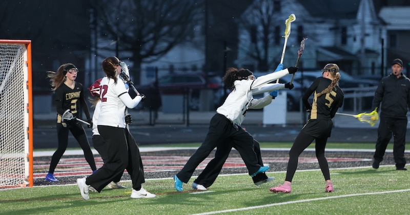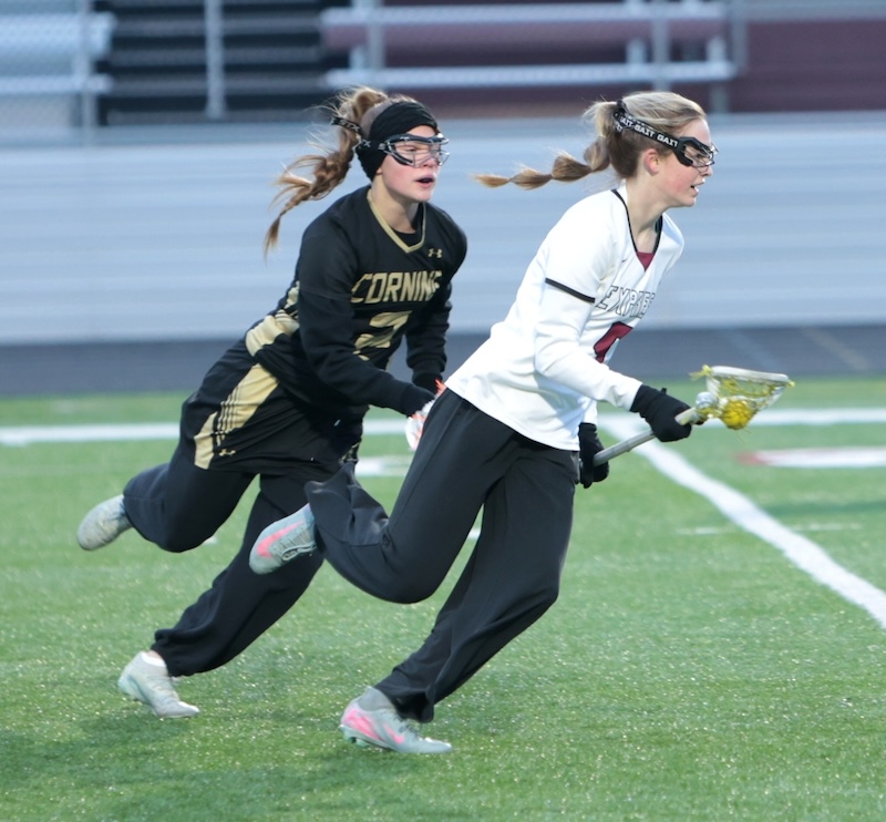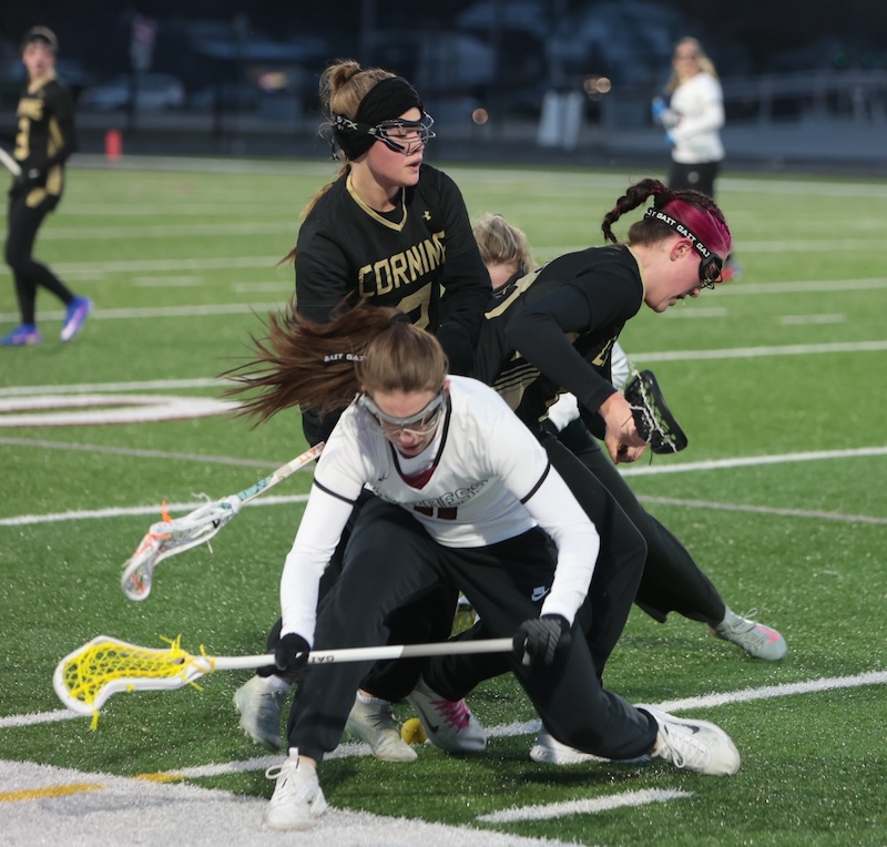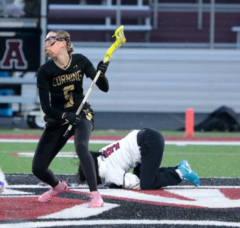 STAC GIRLS' LACROSSE: CORNING HAS 7 PLAYERS SCORE MULTIPLE GOALS AS THEY TOP ELMIRA (24 PHOTOS)(March 23, 2026) Southern Tier Sports Report ELMIRA — The Corning girls’ lacrosse team had seven players score multiple goals as they opened the season with a 17-3 win over Elmira.