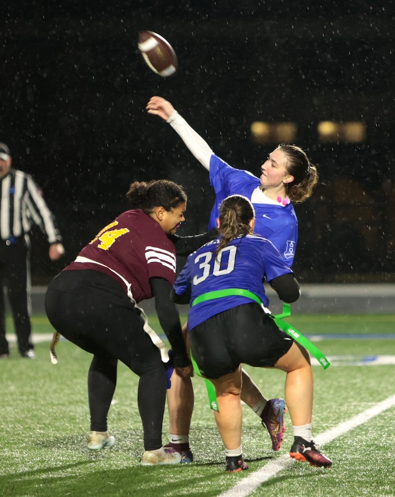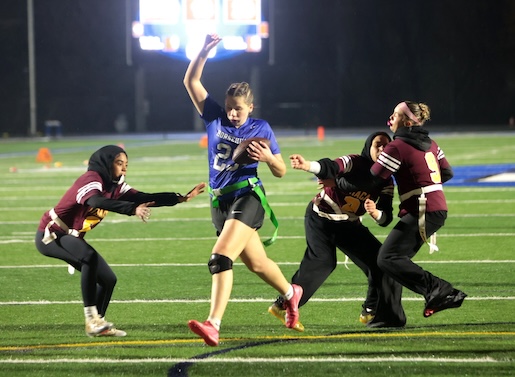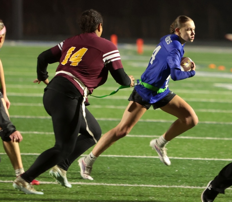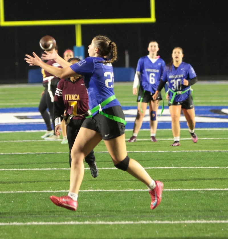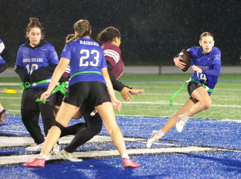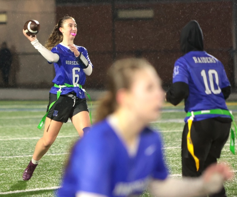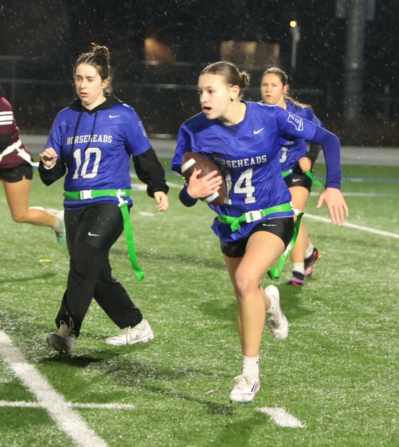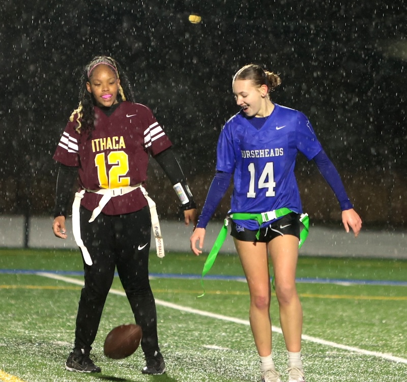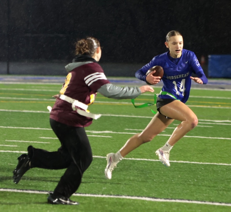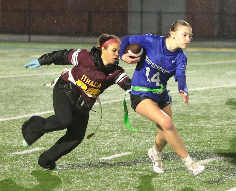 SECTION 4 FLAG FOOTBALL: BLUNT RUNS FOR 249 YARDS BUT HORSEHEADS IS EDGED BY ITHACA (24 PHOTOS)(March 26, 2026) Southern Tier Sports Report HORSEHEADS — Sydney Blunt ran for 249 yards on 22 carries in the pouring rain, but the Horseheads flag football team was edged by Ithaca, 26-20 on Thursday night.