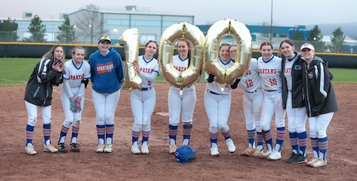 The Edison softball was mobbed by her teammates after the 100th strikeout.