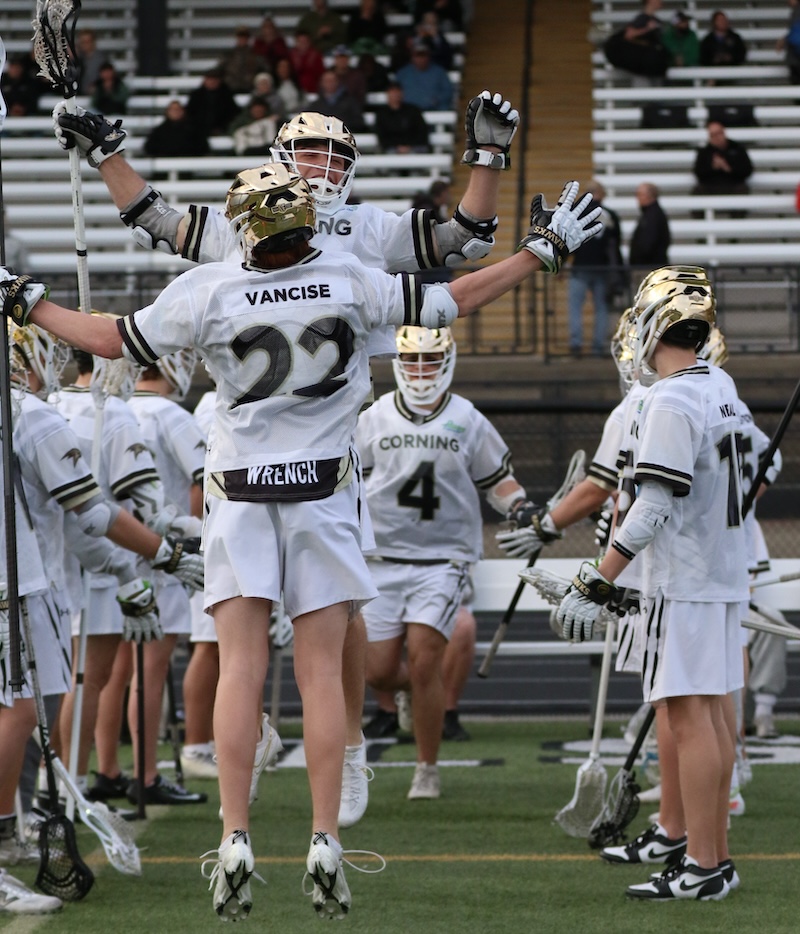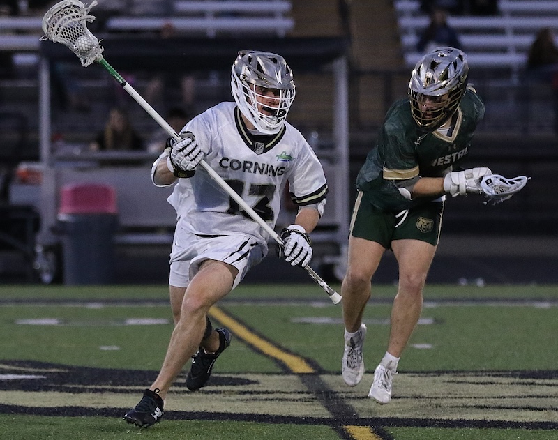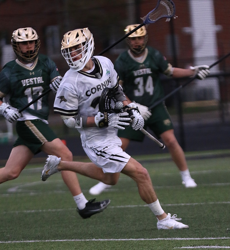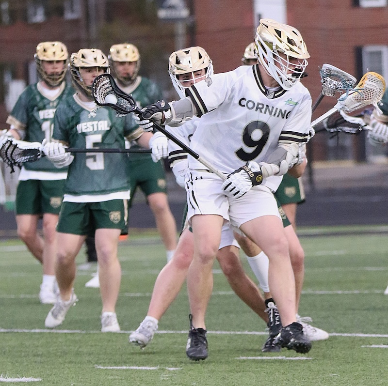 SECTION 4 BOYS' LACROSSE: SMITH AND HOGUE EACH SCORE FIVE GOALS AS CORNING TOPS VESTAL (14 PHOTOS)(April 9, 2026) Southern Tier Sports Report CORNING — The Corning Hawks got five goals each from Kohl Hogue and Clayton Smith as they topped Vestal 16-3 on Thursday night.