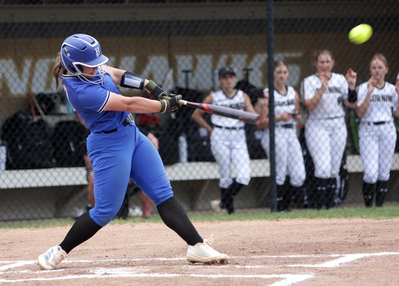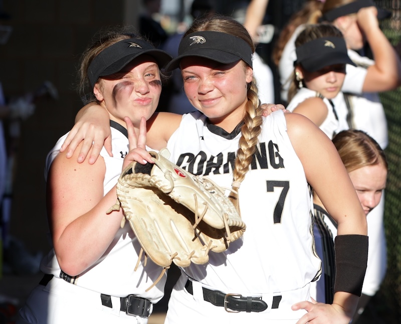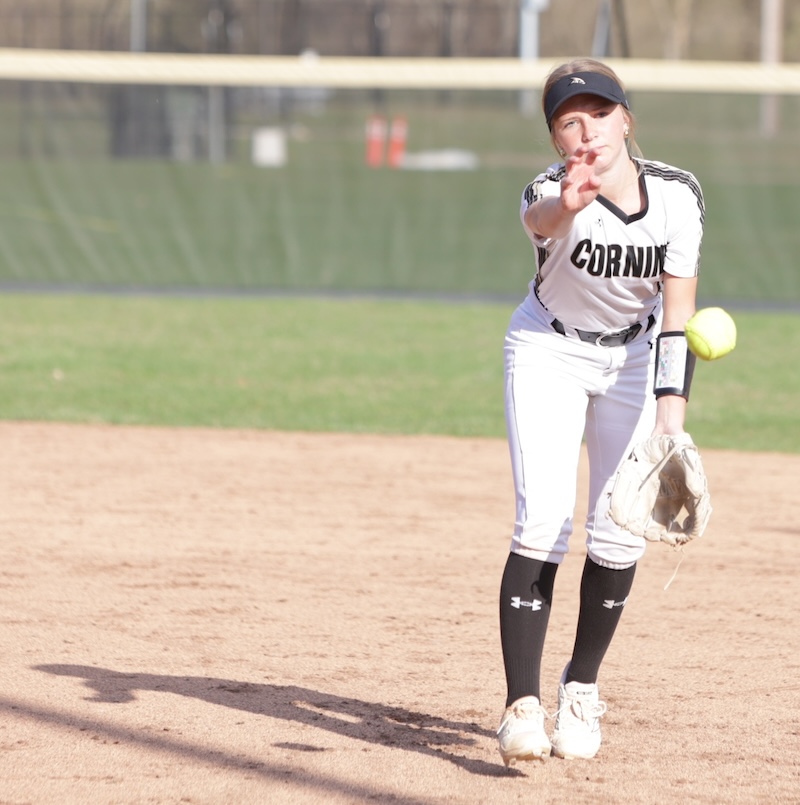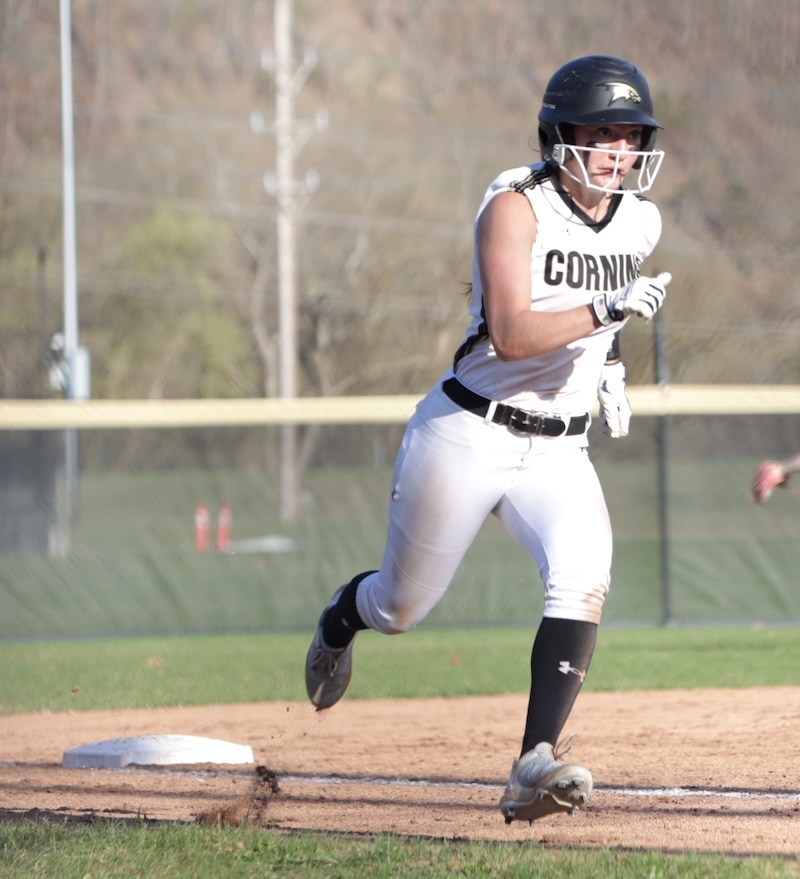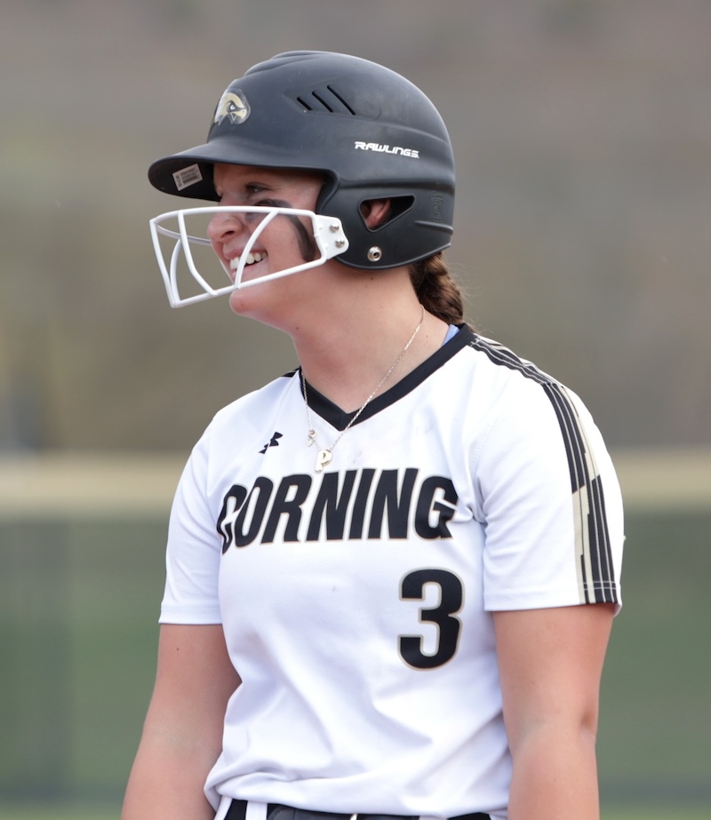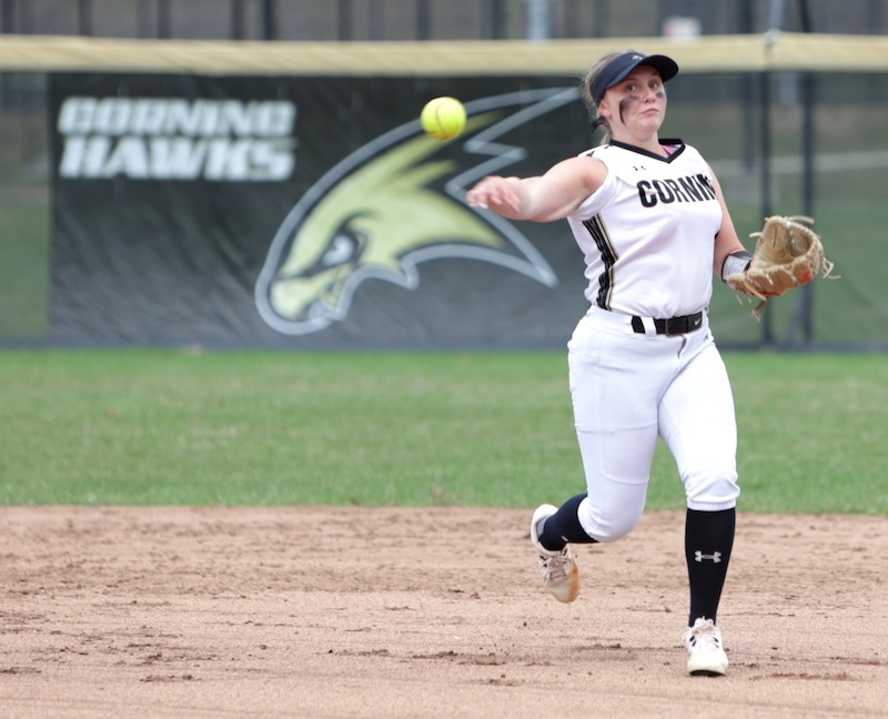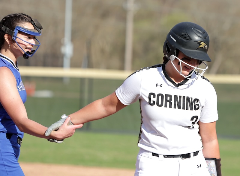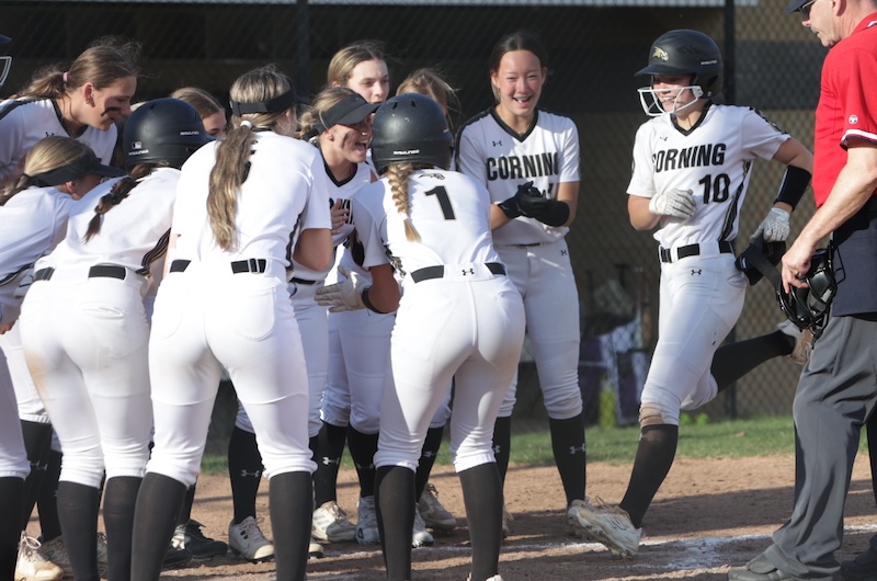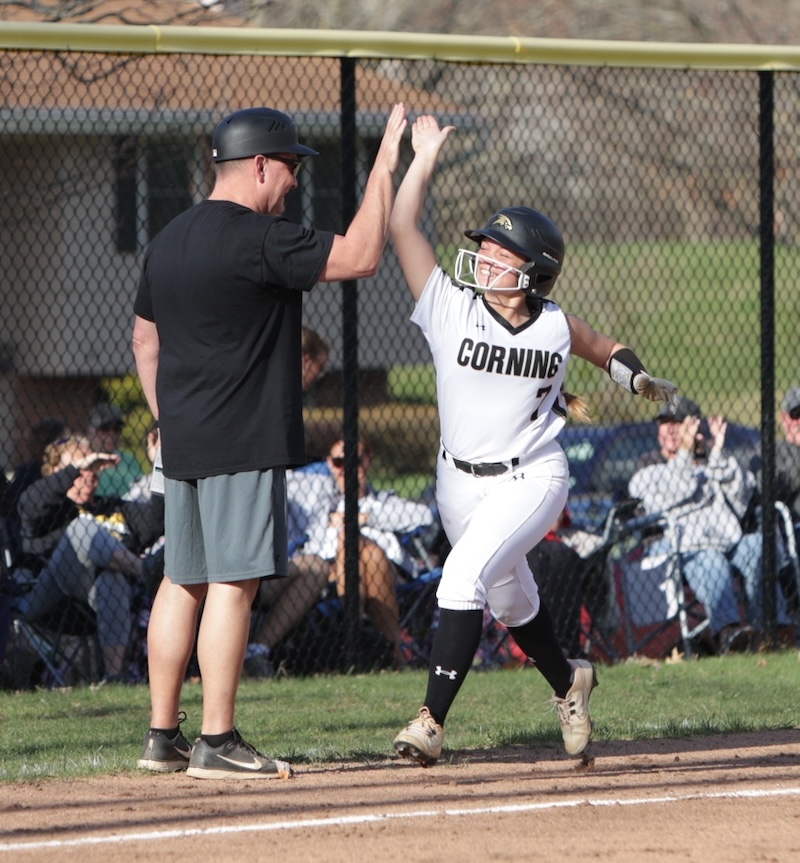 Corning scored nine in the first and 12 in the second. In the second inning Keana Mann and Matti Johnston each hit home runs. Lauren DeRosa had a fourth-inning home run.