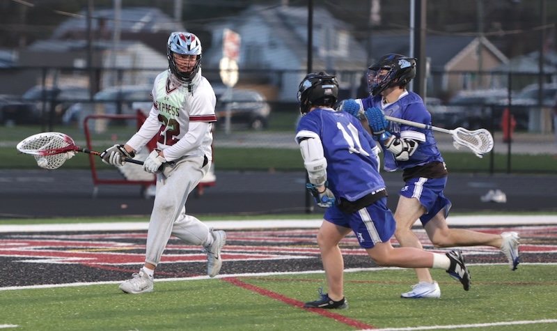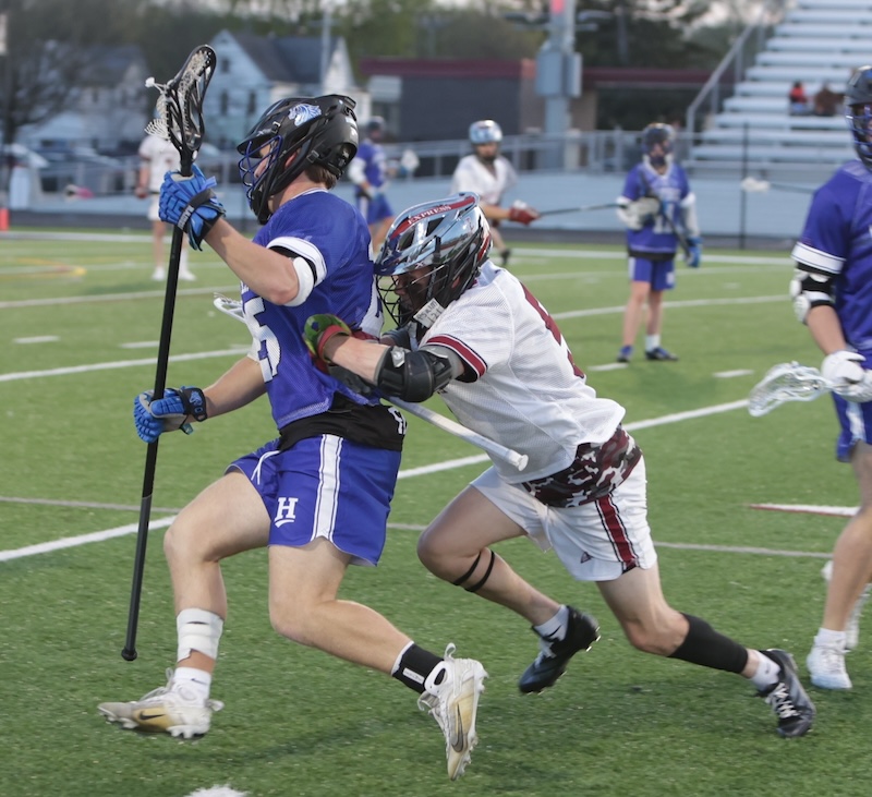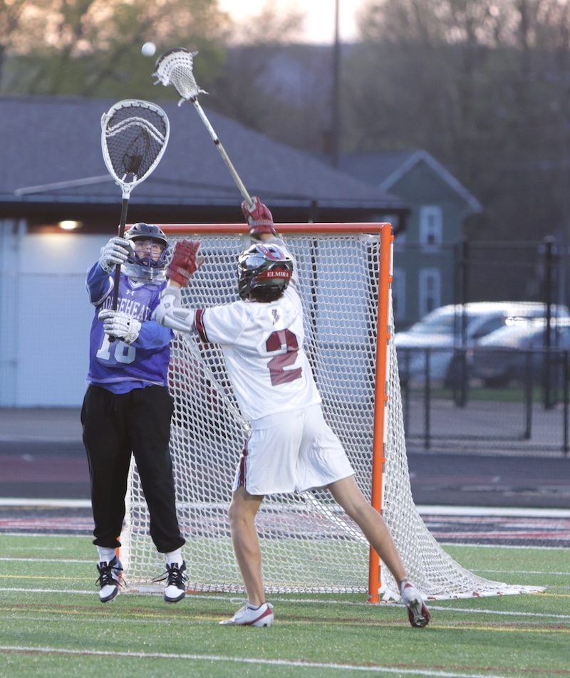 SECTION 4 BOYS' LACROSSE: HORSEHEADS EDGES ELMIRA 8-7 IN 4 OT'S ON LYNCH GOAL (24 PHOTOS)(April 17, 2026) Southern Tier Sports Report ELMIRA — A Seamus Lynch goal in the fourth overtime lifted the Horseheads boys’ lacrosse team past Elmira 8-7.