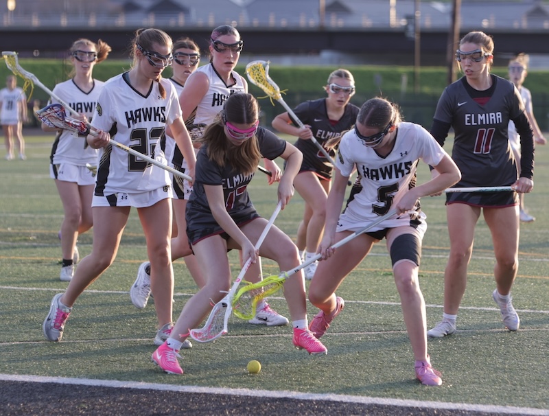 STAC GIRLS' LACROSSE: CORNING HAS SIX SCORE MULTIPLE GOALS AS THEY TOP ELMIRA (24 PHOTOS)(April 23, 2026) Southern Tier Sports Report CORNING — The Corning Hawks girls’ lacrosse team got multiple goals from six different players as they beat Elmira 19-2 on Thursday night.