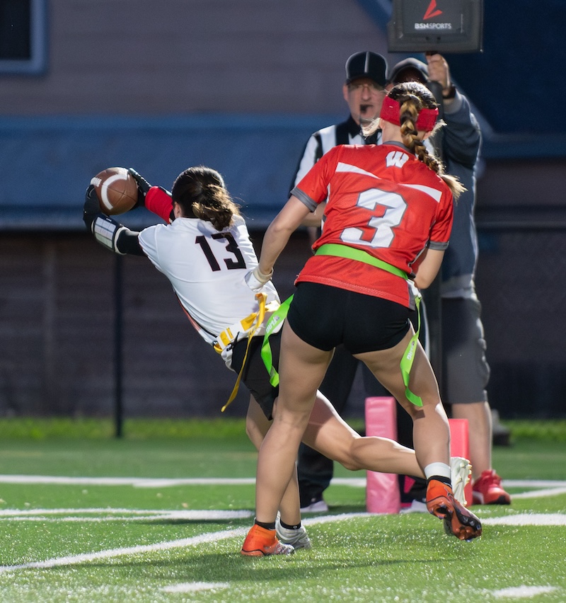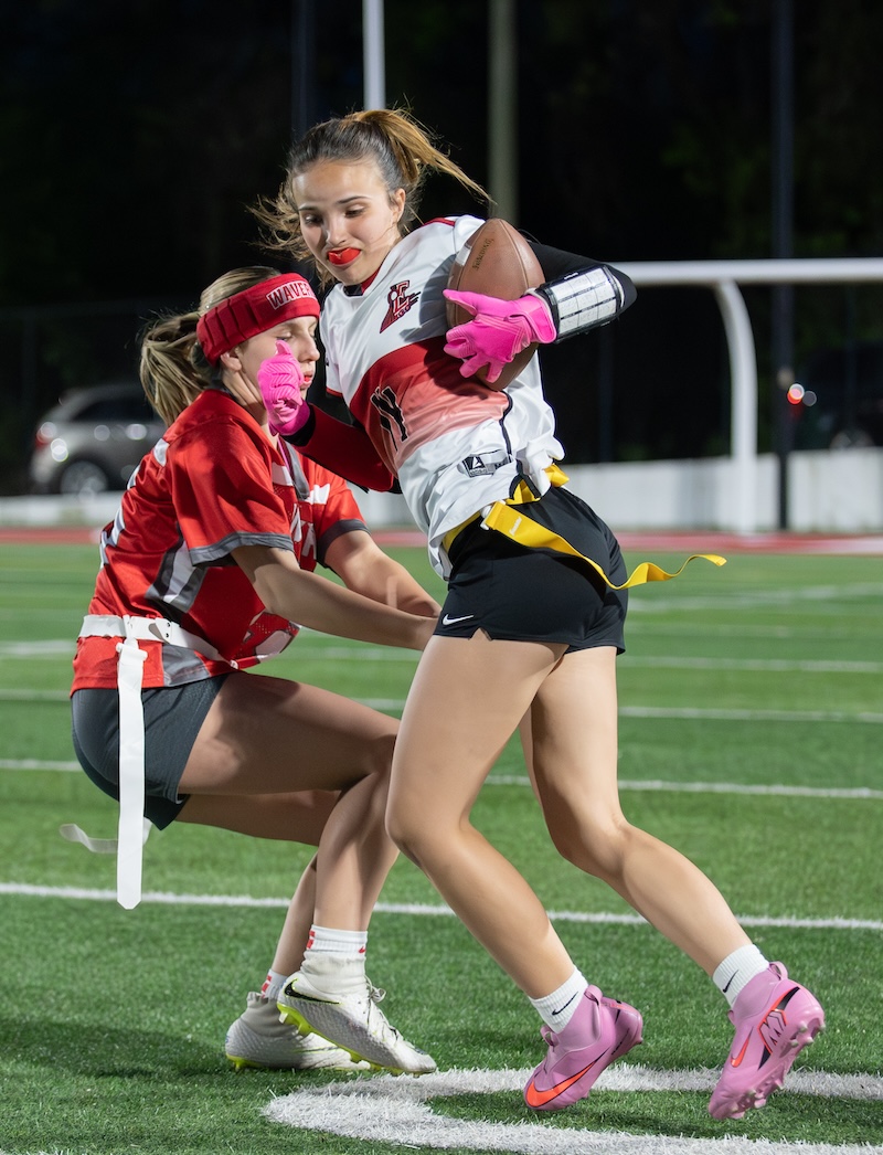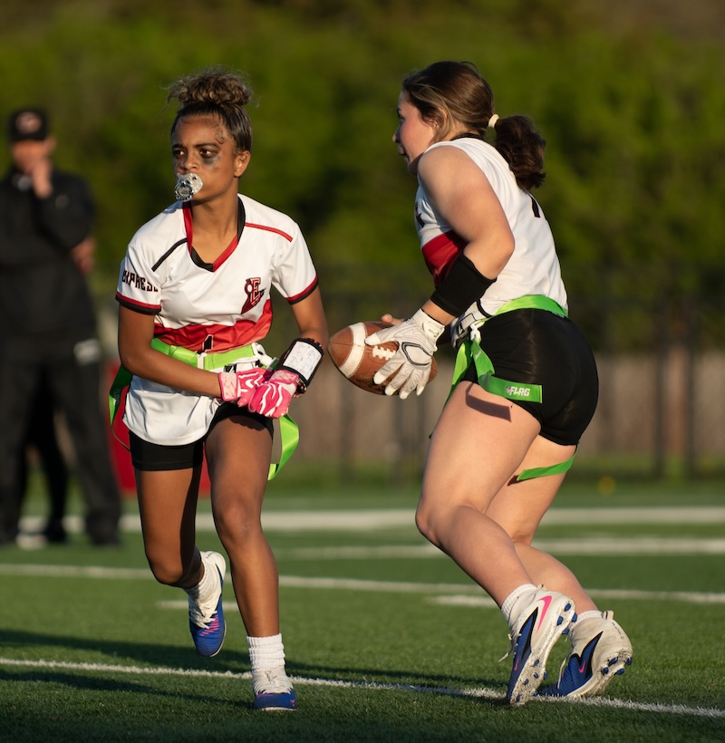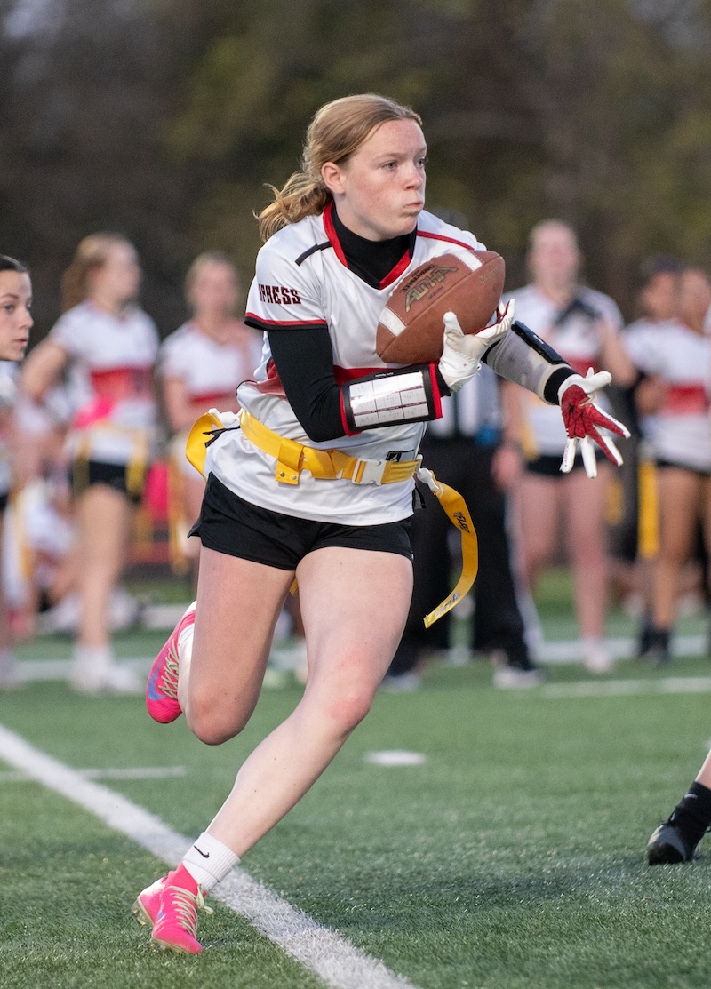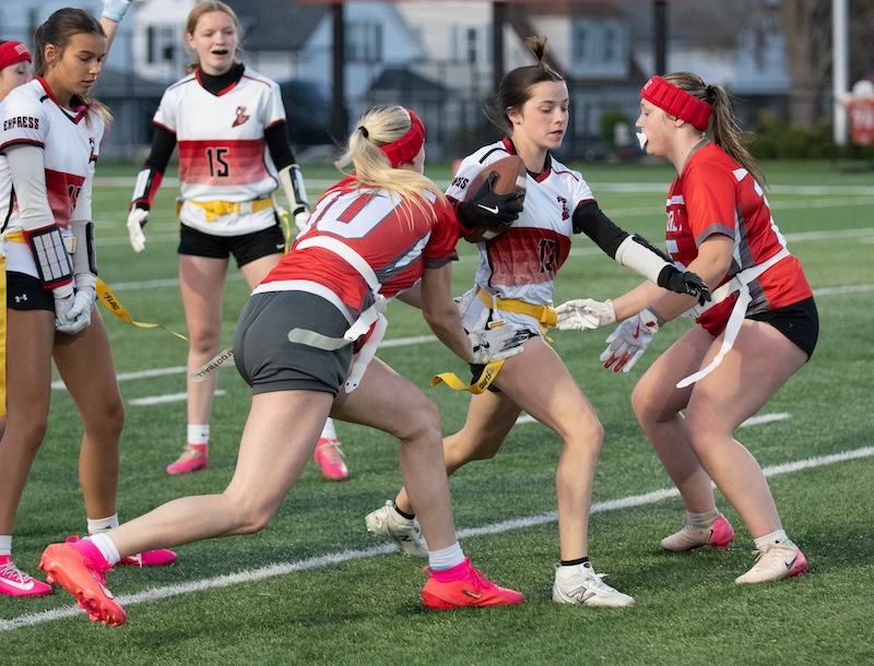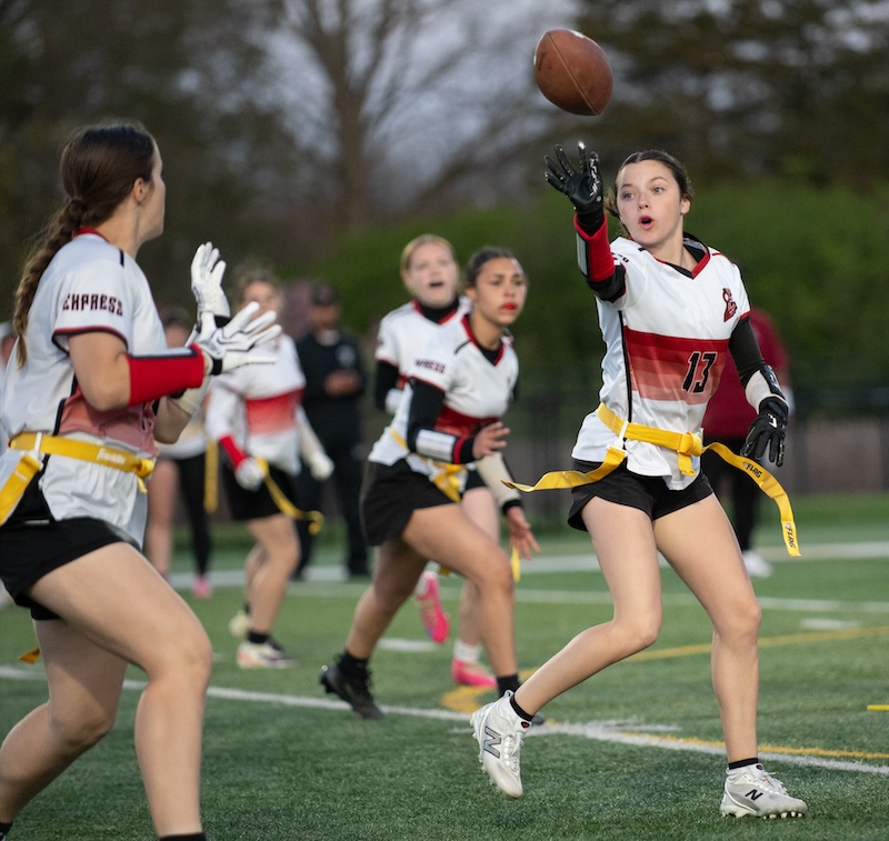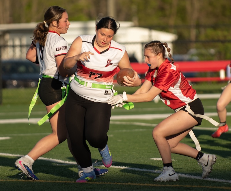 The Express got two touchdown passes from Marley Devlin in the game. One of those passes was to her sister, Ella Devlin, and one was to Emma Lambert. Gracelyn Wheeler, Ava Preston and Lambert all had some big catches through the game.